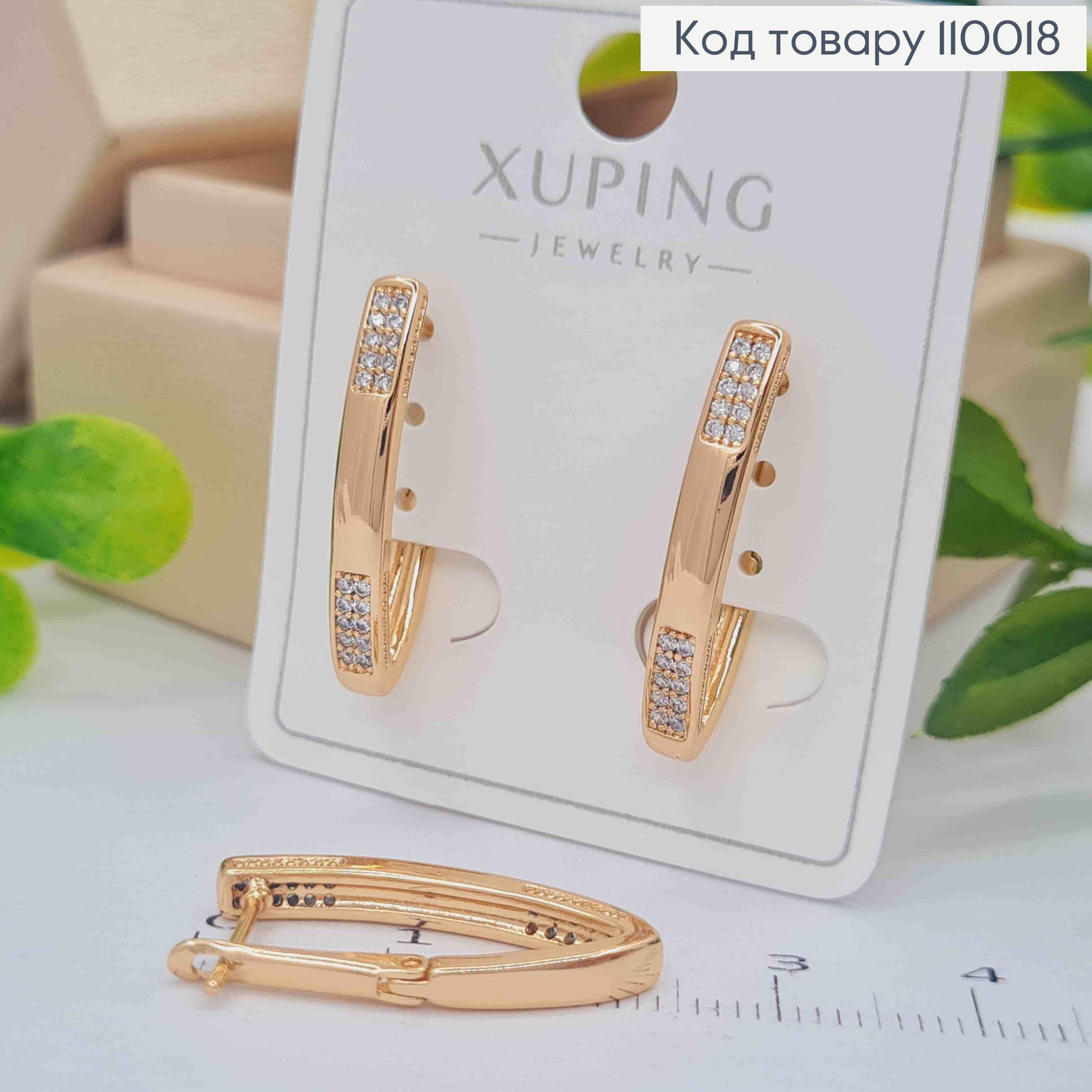 Серьги кольца "Прямоугольные" украшены Блестящими камешками, длиной 2,4см, застежка заколка, Xuping 18К 110199 фото