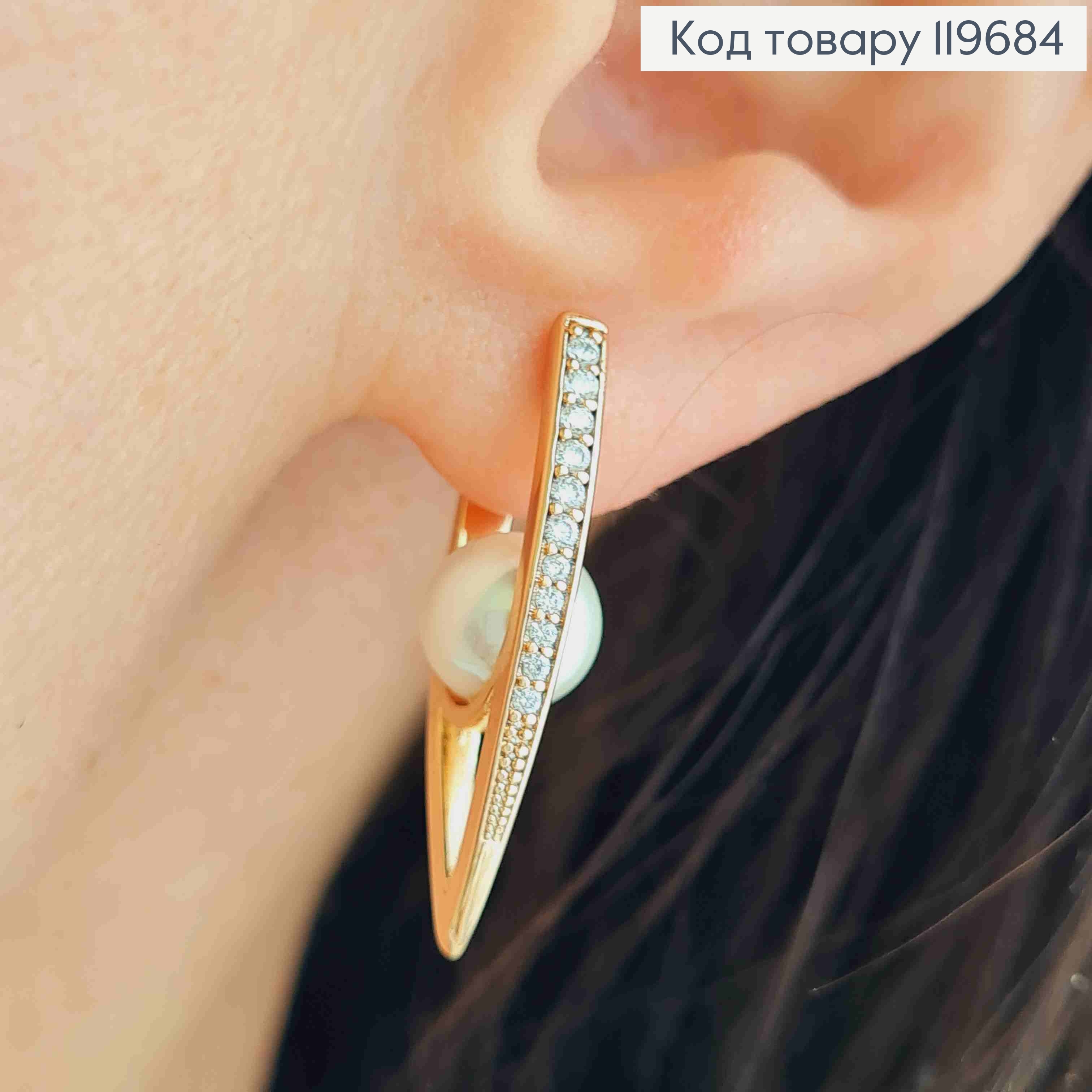 Серьги Стрелы с Блестящими камешками и Жемчужкой, длина 2,8см, английская застежка, Xuping 18К