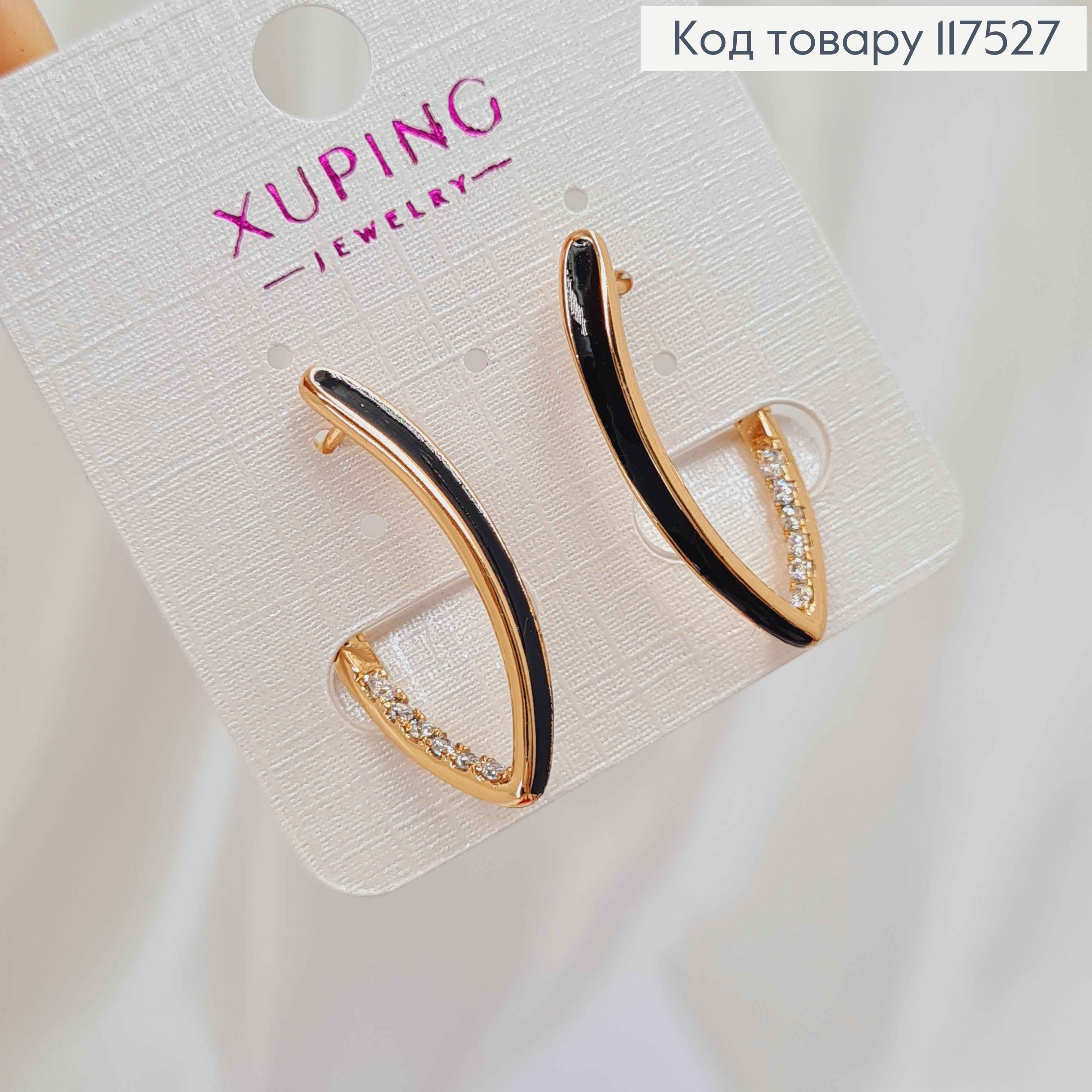 Сережки Стрелы с Черной эмалью и Блестящими камешками, 2,8см, англ. зам., XUPING 18K