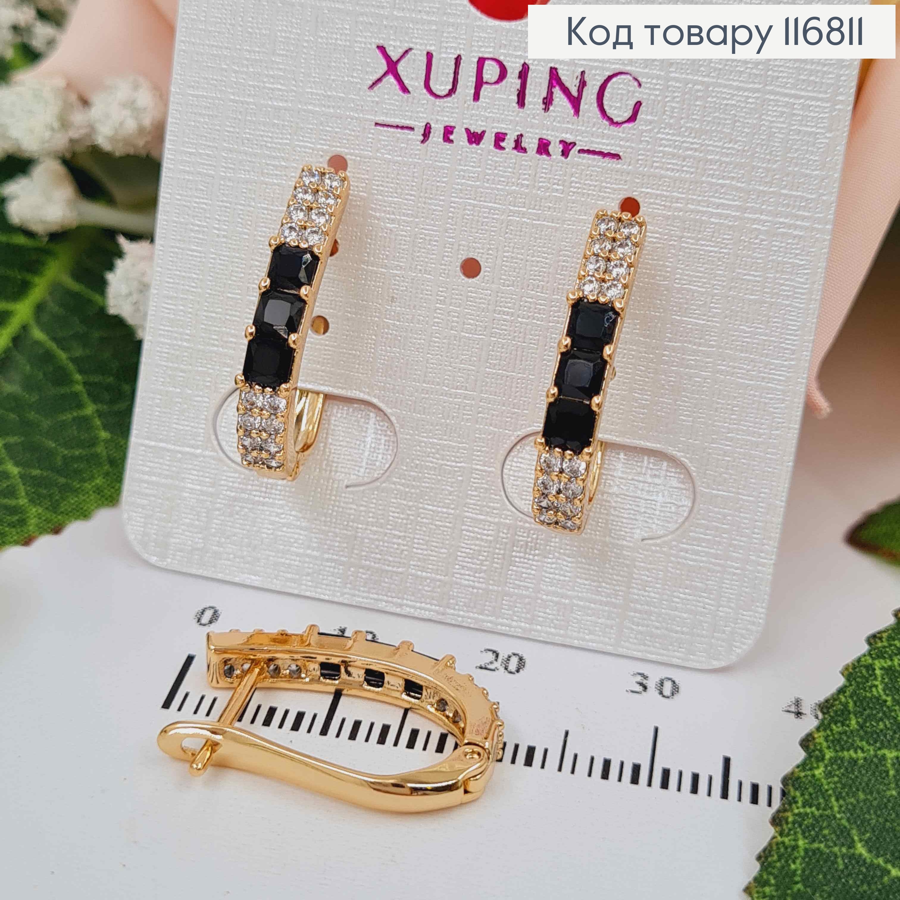 Сережки Стрелы, с тремя Черными камешками, 2см, англ. зам., Xuping 18K