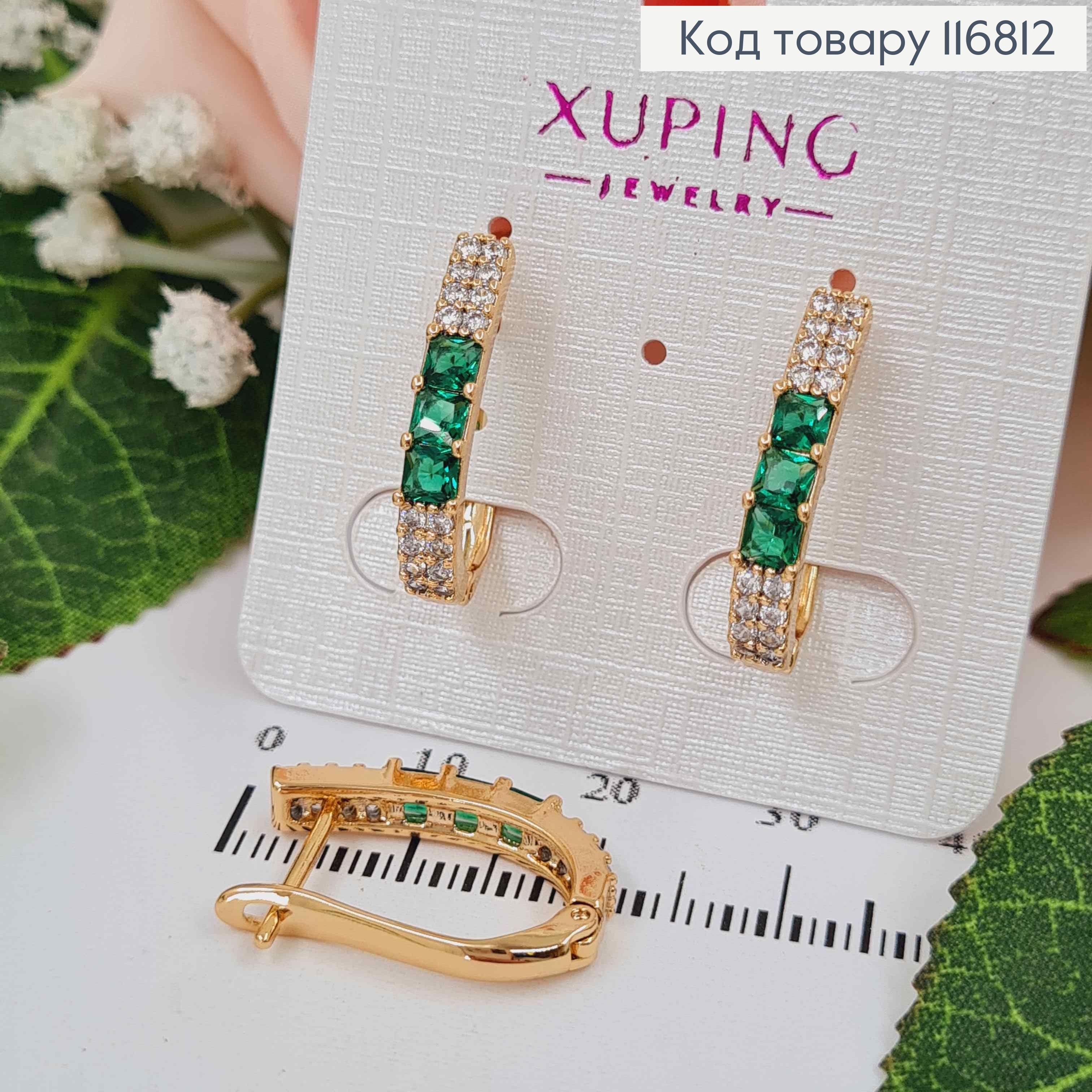 Сережки Стрелы, с тремя Зелеными камешками, 2см, англ. зам., Xuping 18K