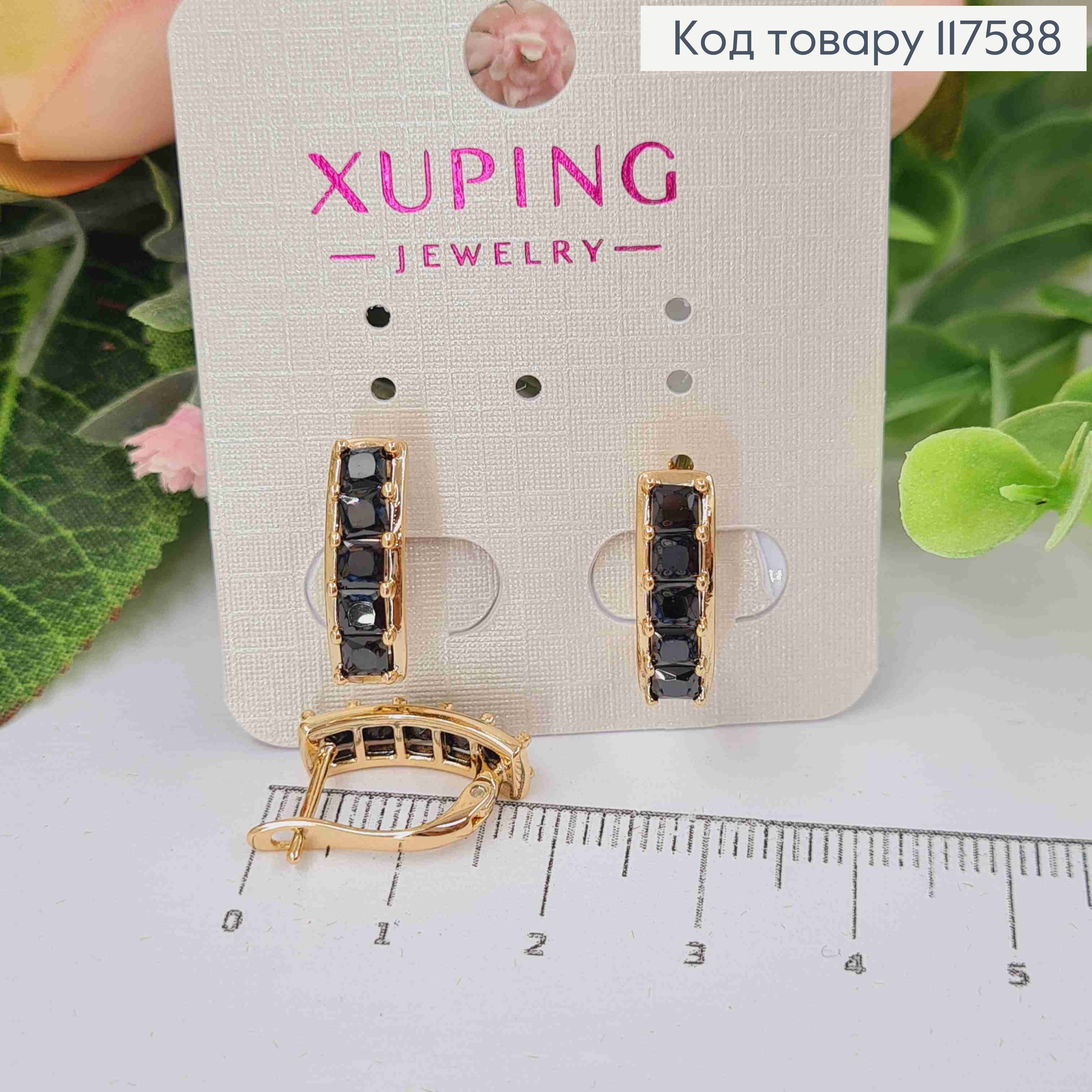 Серьги "Рассвет" с Черными камешками, 1,6см, английская застежка, XUPING 18K