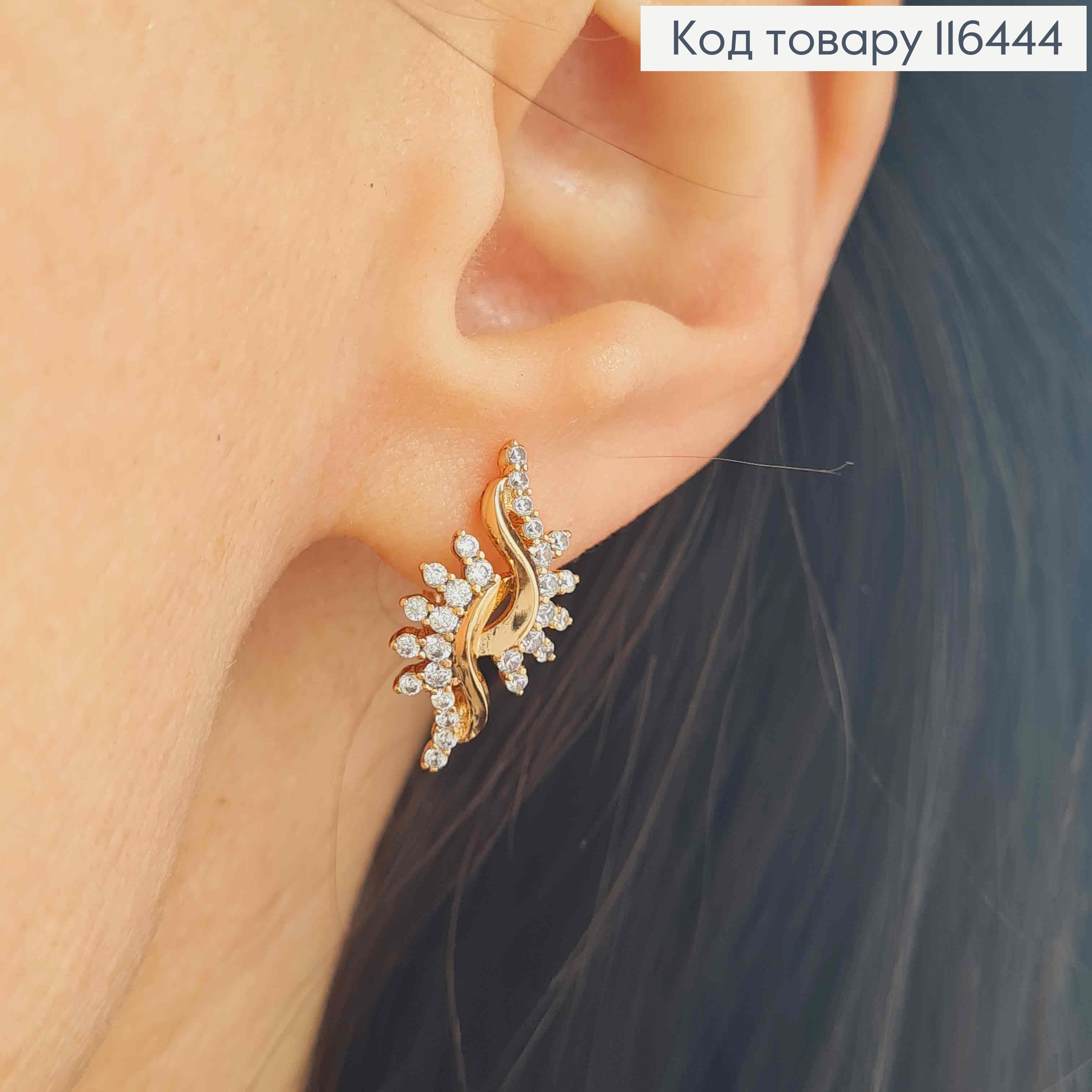 Серьги "Тайна", две волнки с камешками, 2см, Xuping 18К