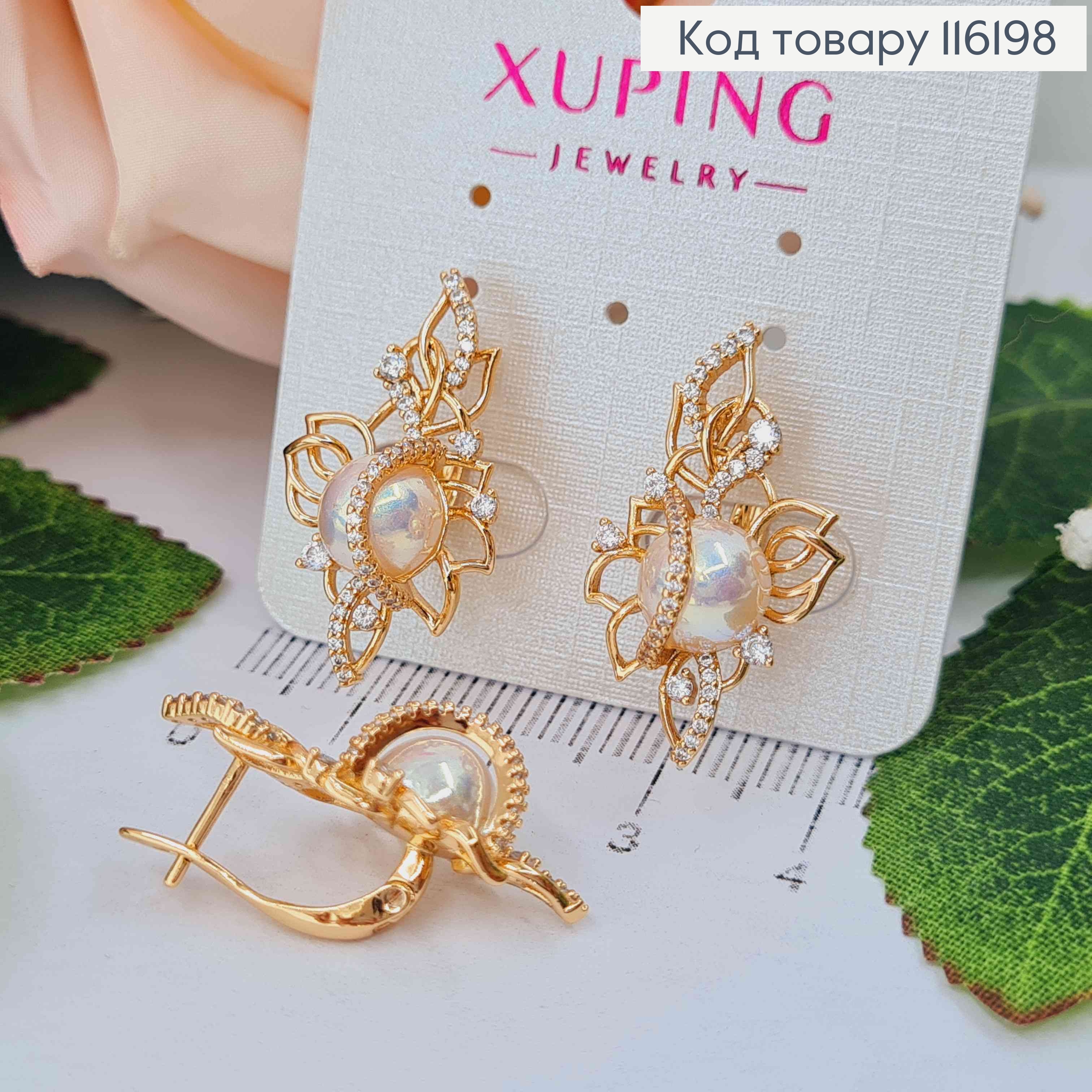 Серьги "Таинственный цвет" с жемчужиной, в камнях, 2,9см, англ. зам. Xuping 18K