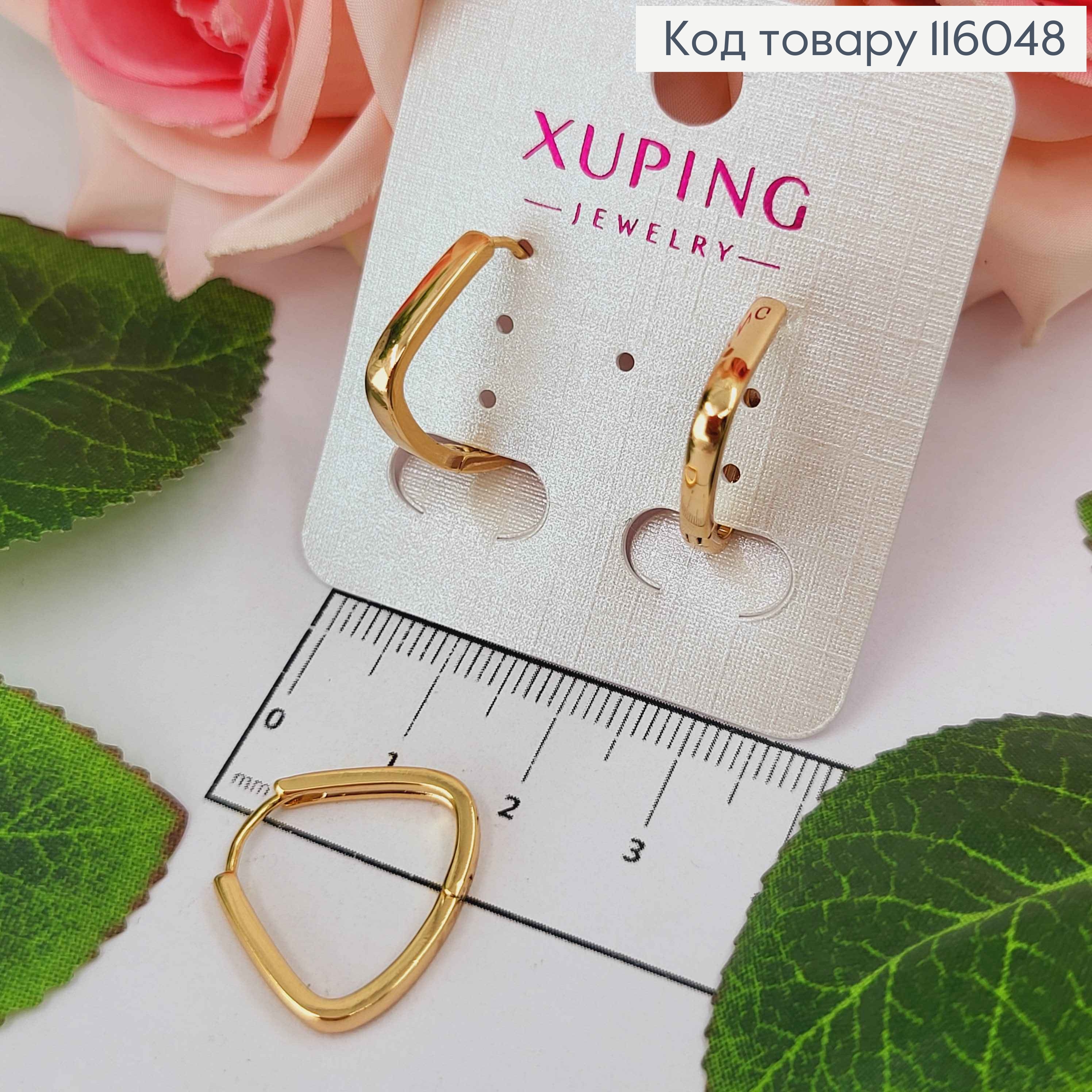 Серьги треугольнички, с закругленными уголками, 2см Xuping 18K