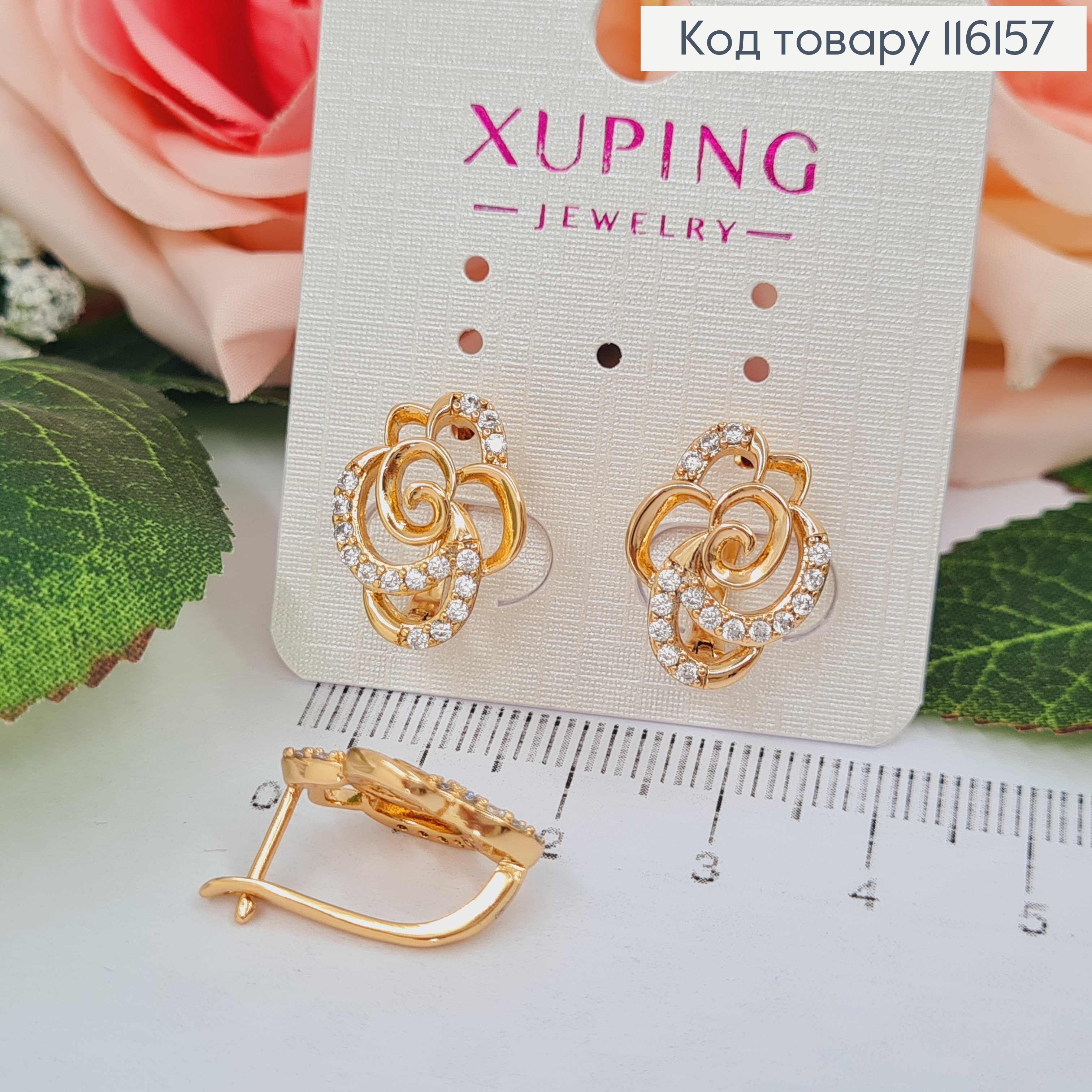 Серьги "Роза" в камнях, 1,6см, англ. застежка, Xuping 18K