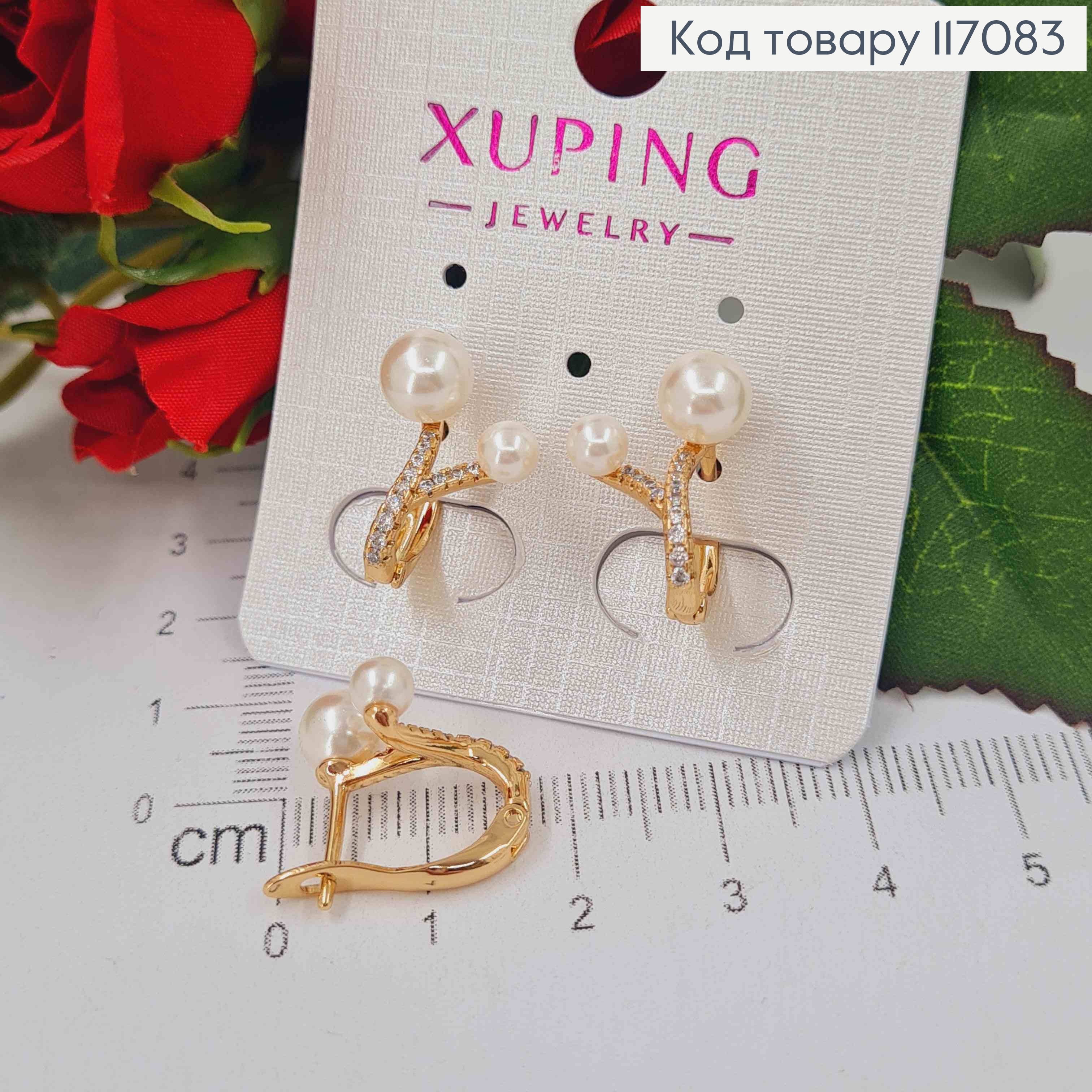 Серьги в камнях, с двумя жемчужинами, 2см, англ.зам. Xuping