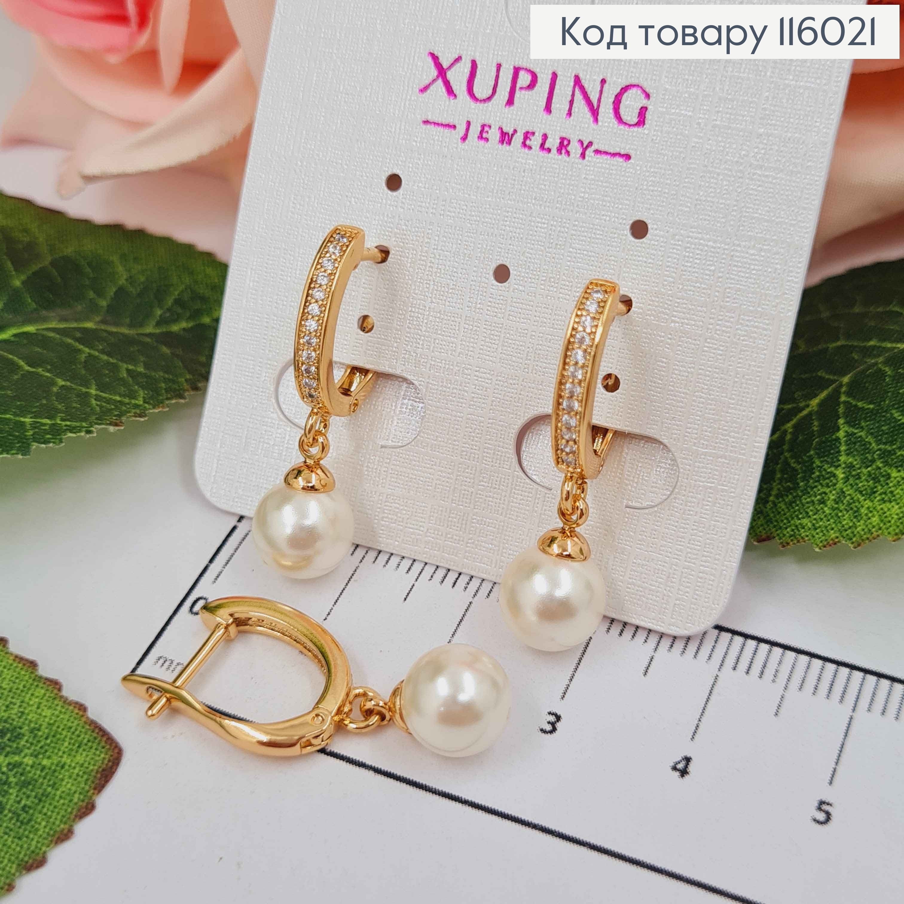Серьги в камешках, с нежными подвесками жемчужинами, 3см, англ. застежка, Xuping 18K