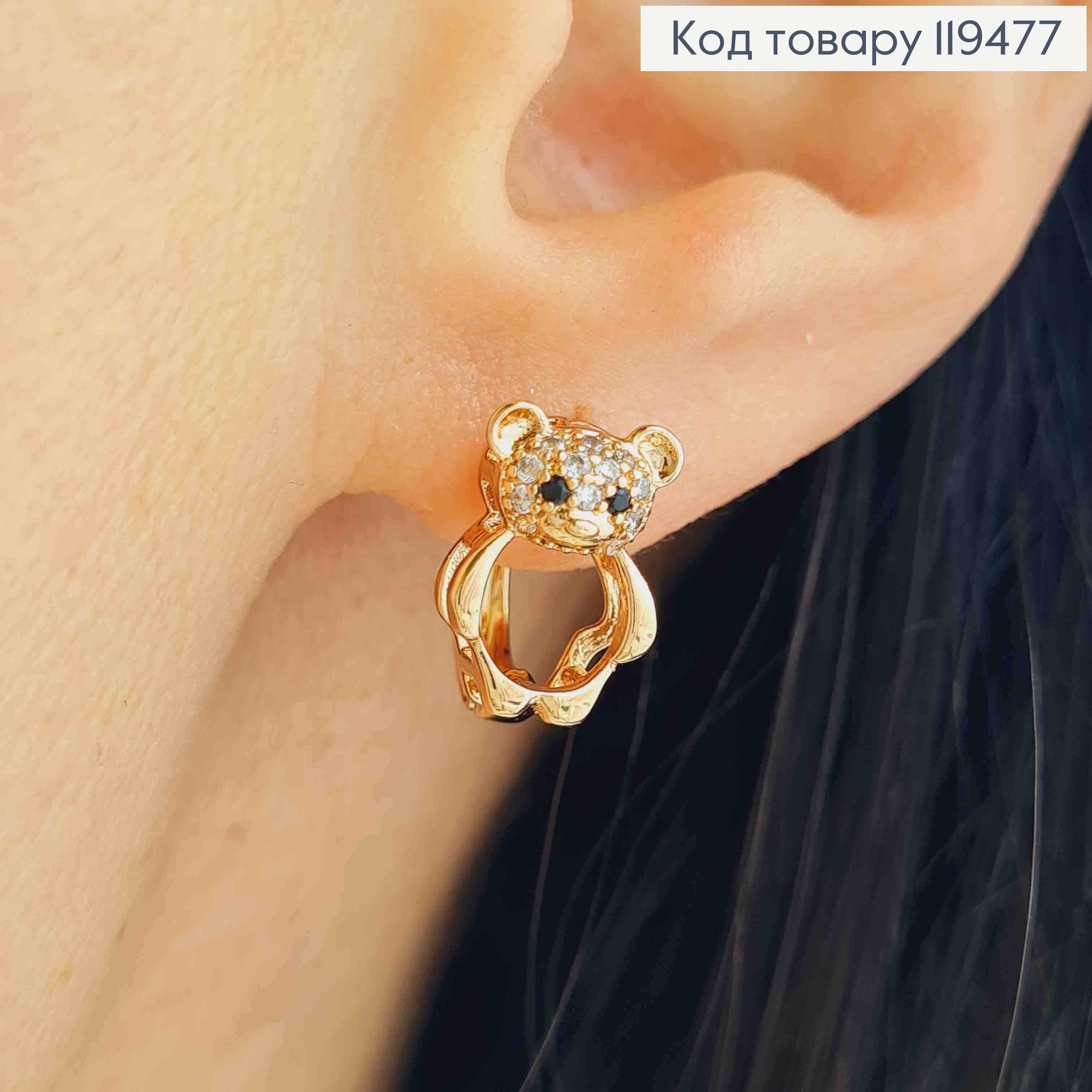 Серьги "Мишки" с Блестящими камешками, 1,2см, английская застежка, Xuping 18К