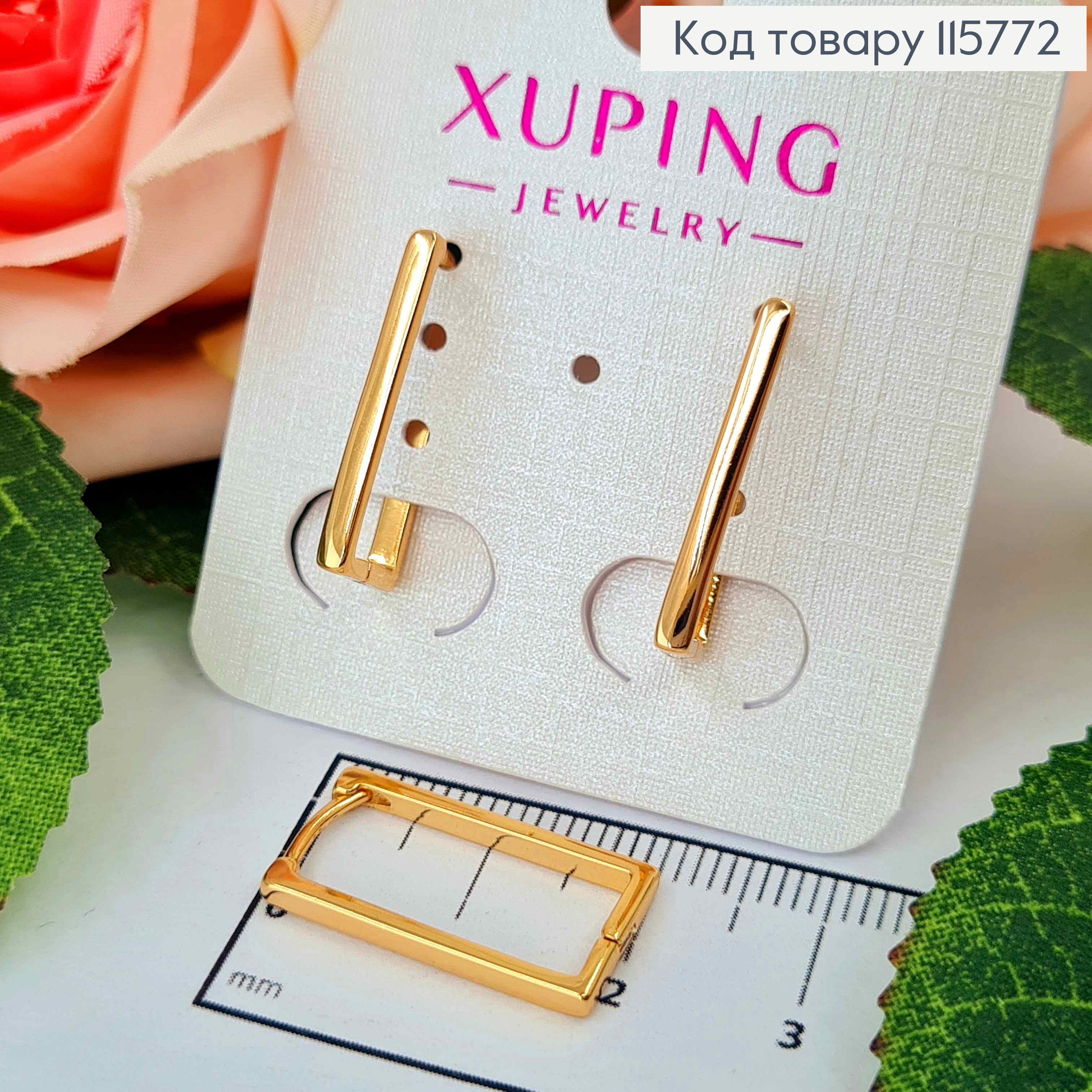 Серьги, удлиненные прямоугольнички, 2см Xuping 18К