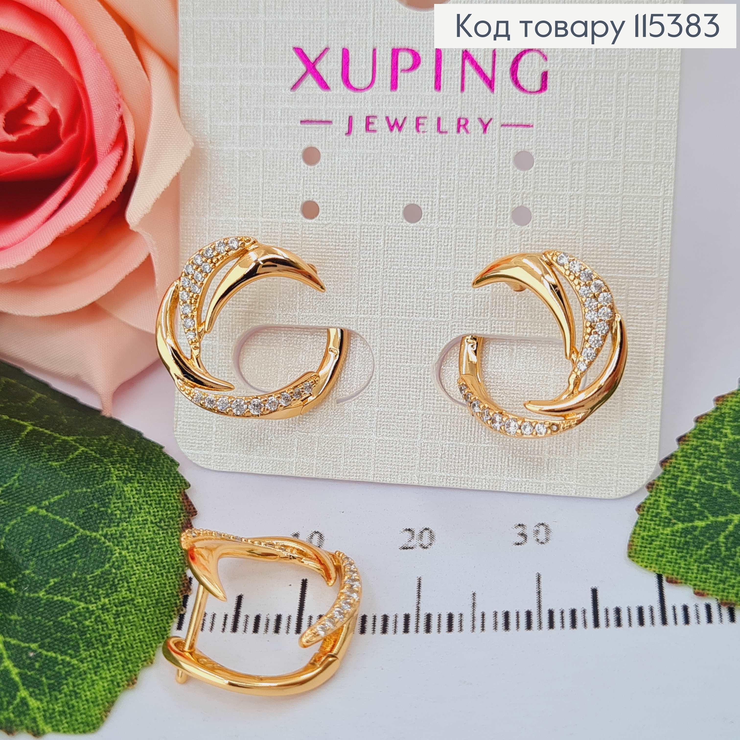 Серьги "Вихрь" с камнями, 1,5см англ. зам. Xuping 18K