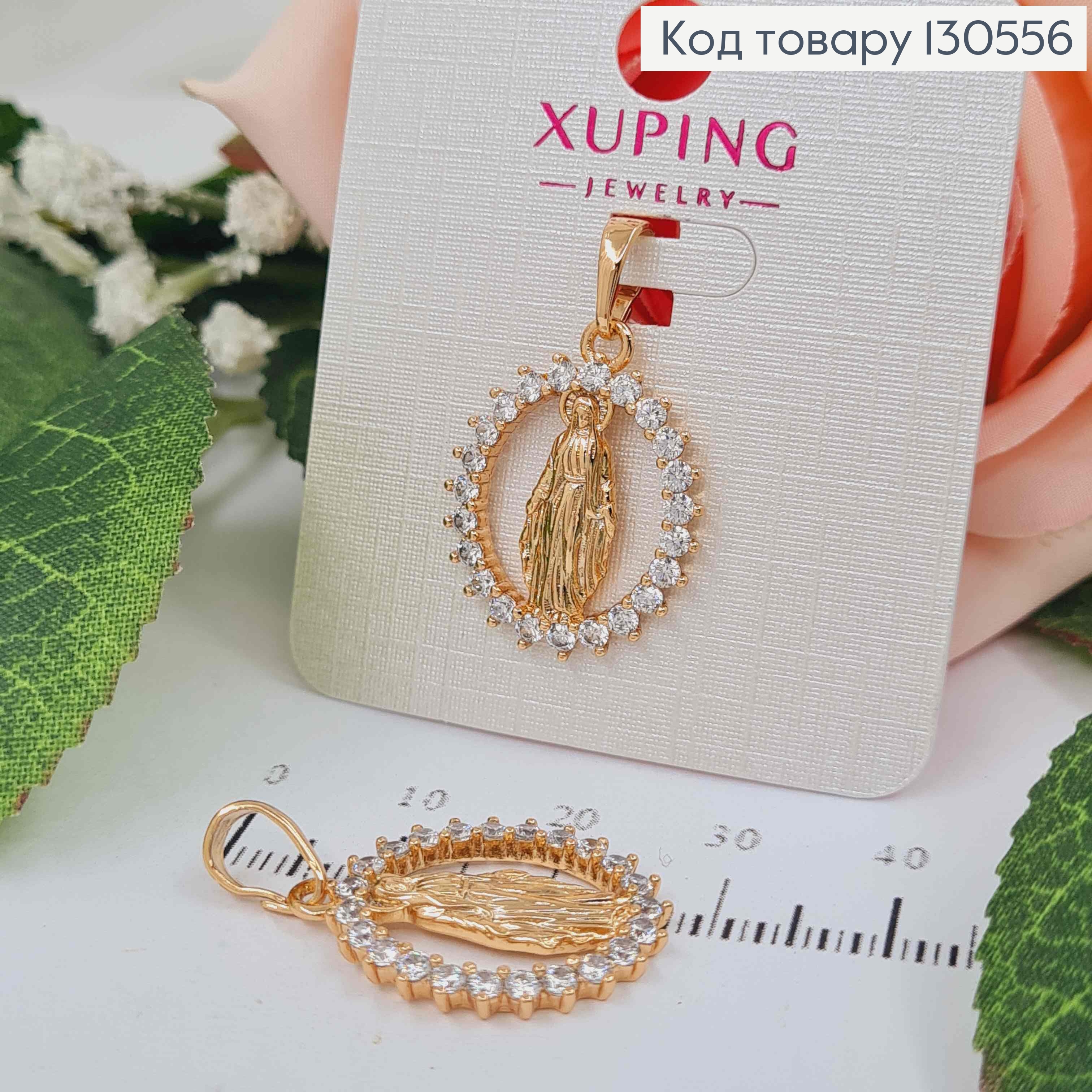 Кулон Божья мать в оправе из камешков, 2см, Xuping 18K