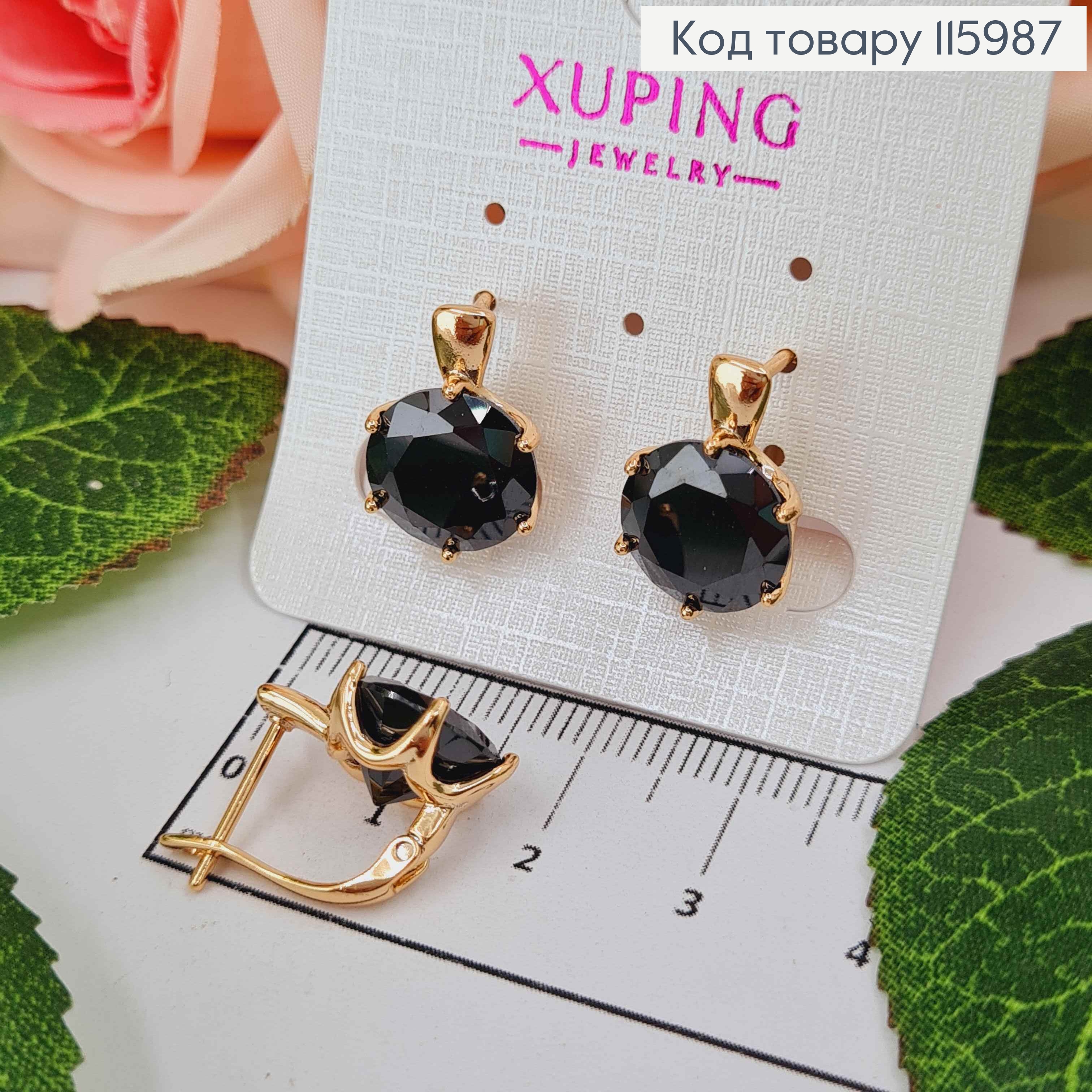 Серьги, "Вирджиния" с большим Чёрным камешком, 1,5см, англ. застежка, Xuping 18K