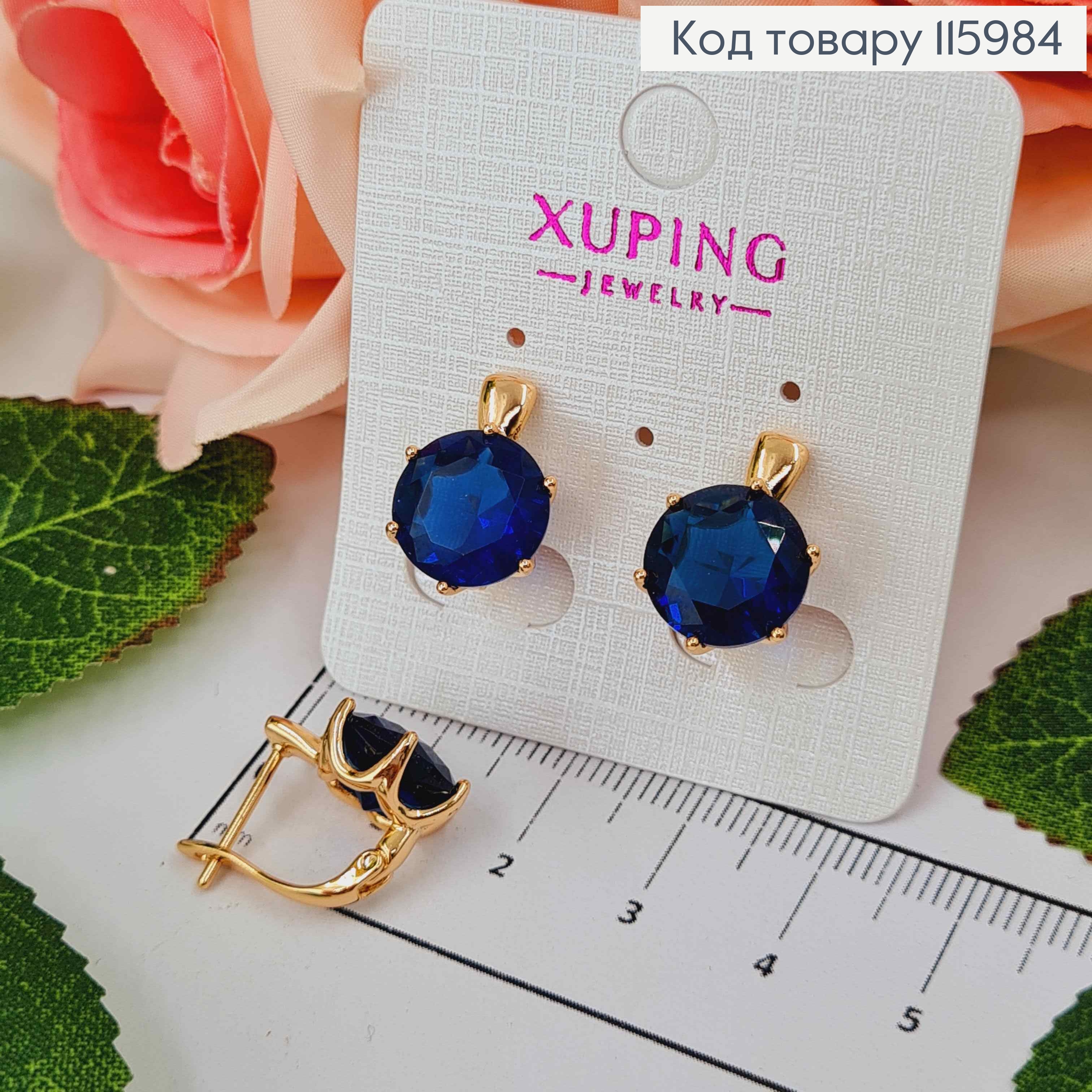 Серьги, "Вирджиния" с большим Синим камешком, 1,5см, англ. застежка, Xuping 18K