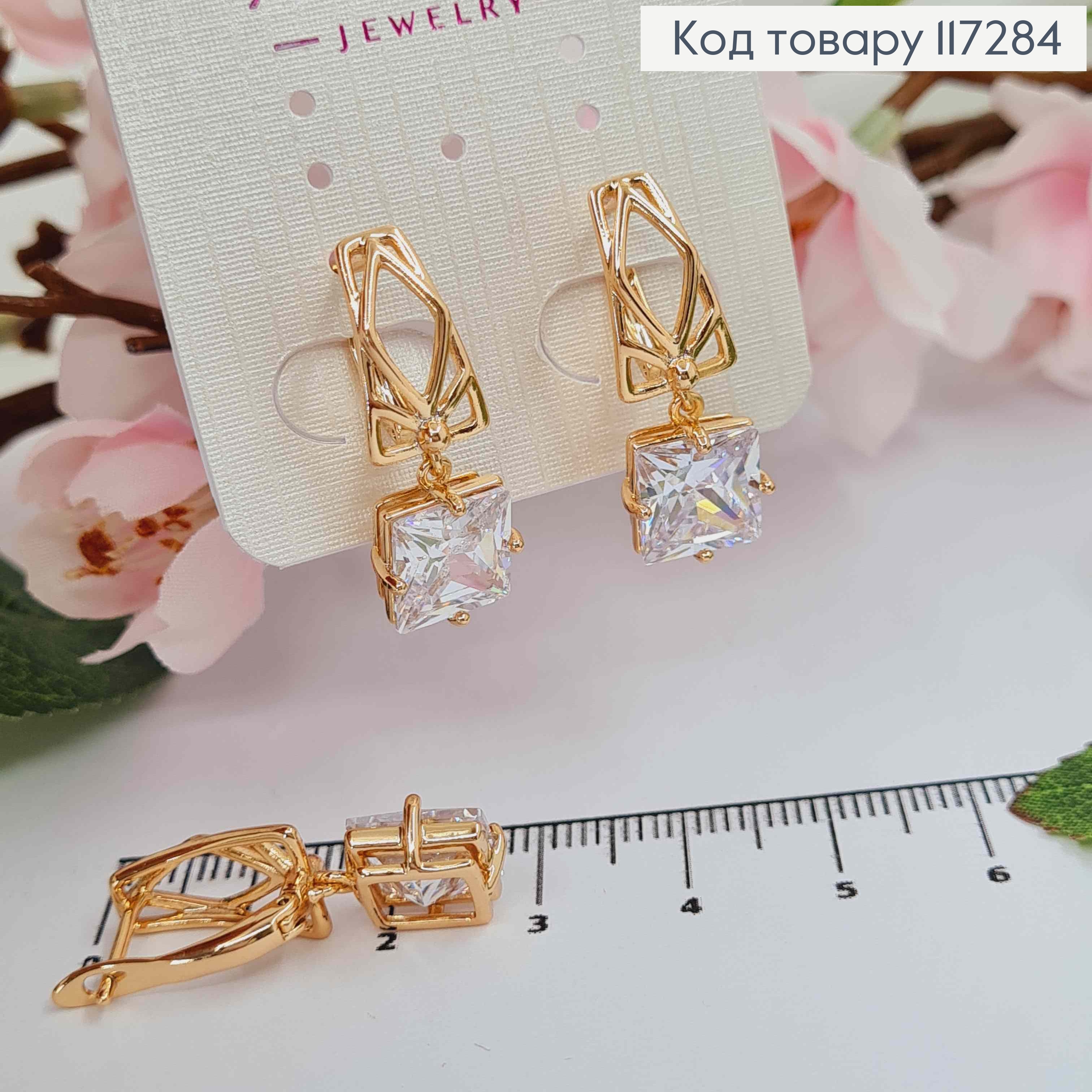 Серьги с квадратным блестящим камнем, 1,9см, английская застежка, Xuping 18K 110257 фото