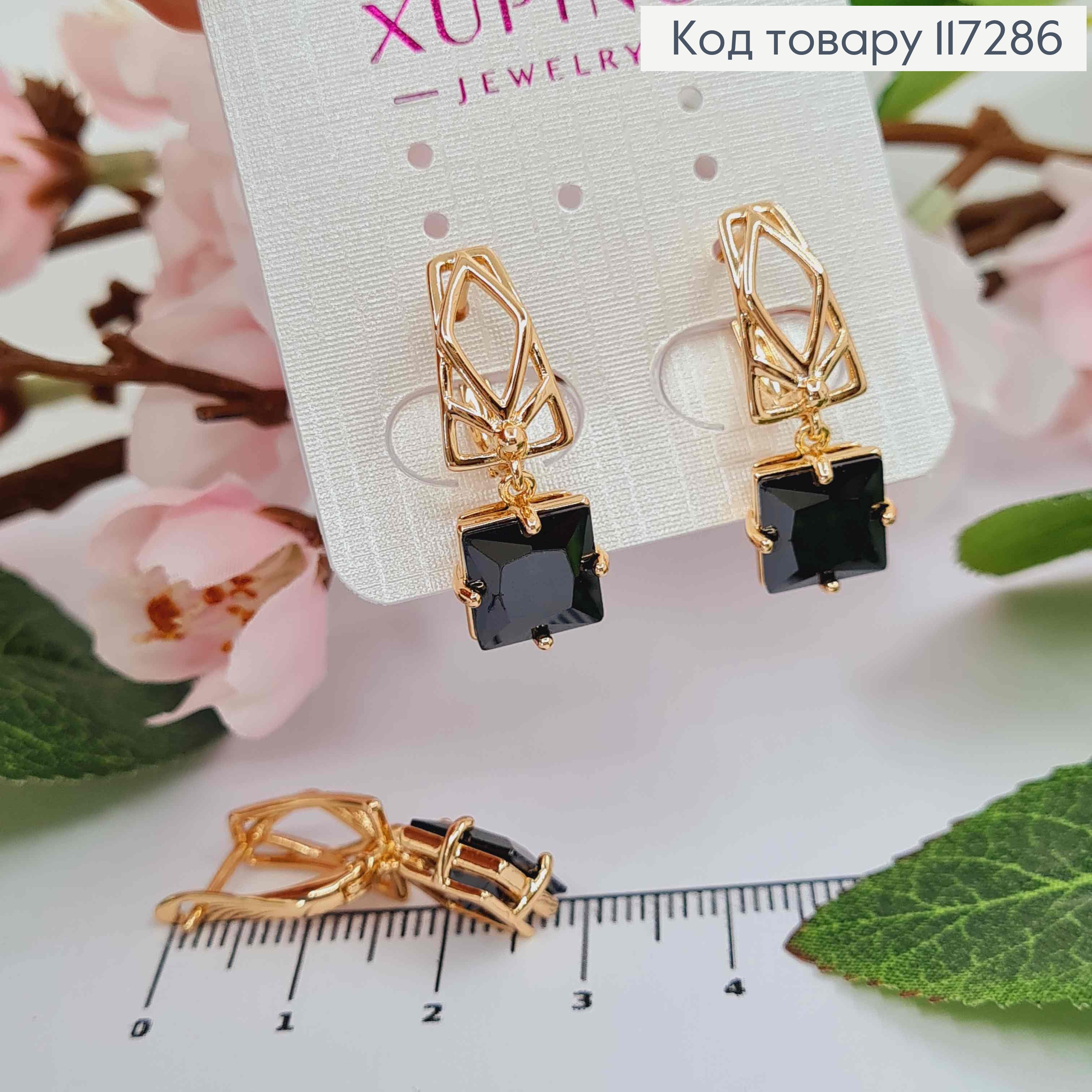 Серьги с квадратным блестящим камнем, 1,9см, английская застежка, Xuping 18K 110257 фото