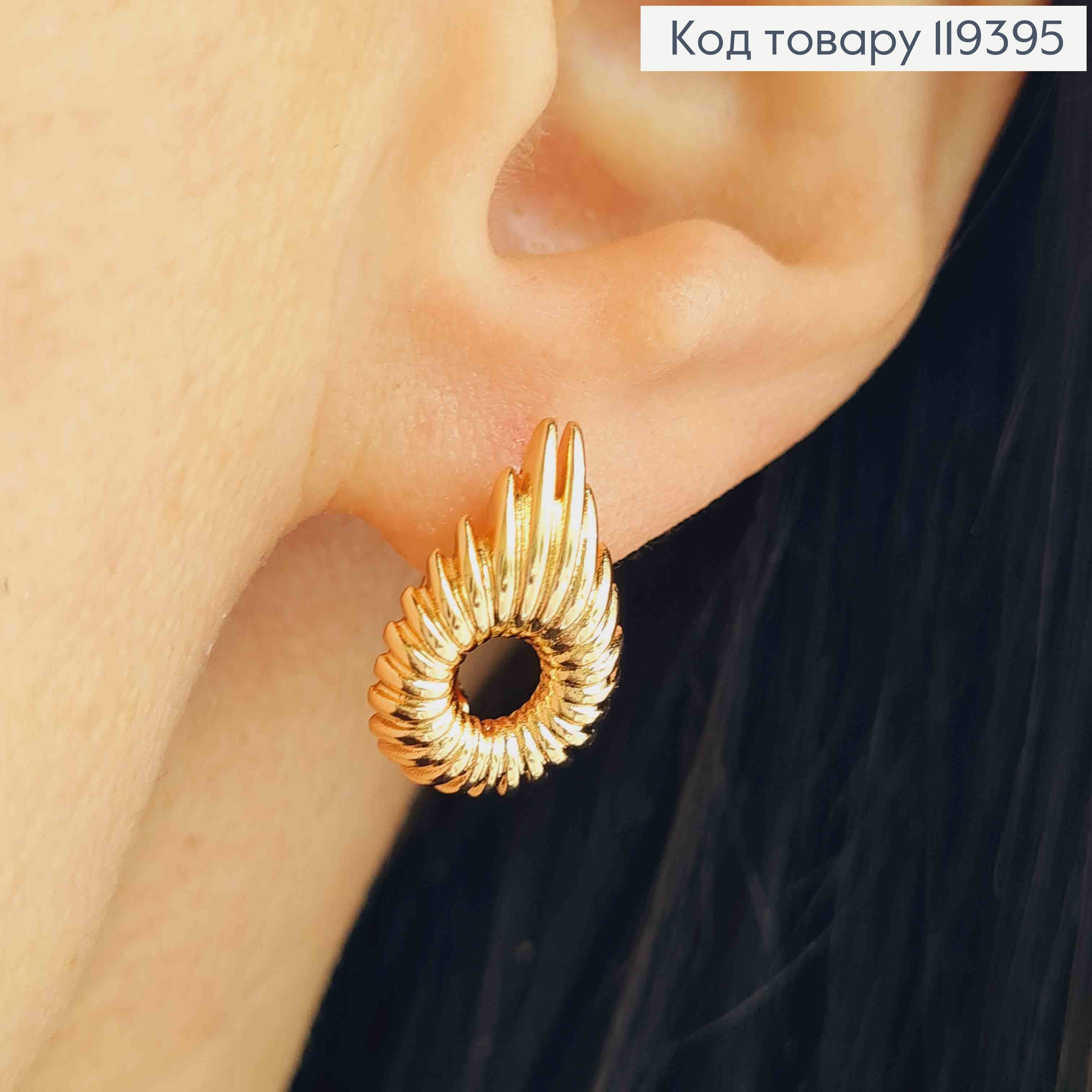 Серьги кольца "Овальные" фактурные, ширина 2мм, длина 1,7см, Xuping 18К. 110197 фото