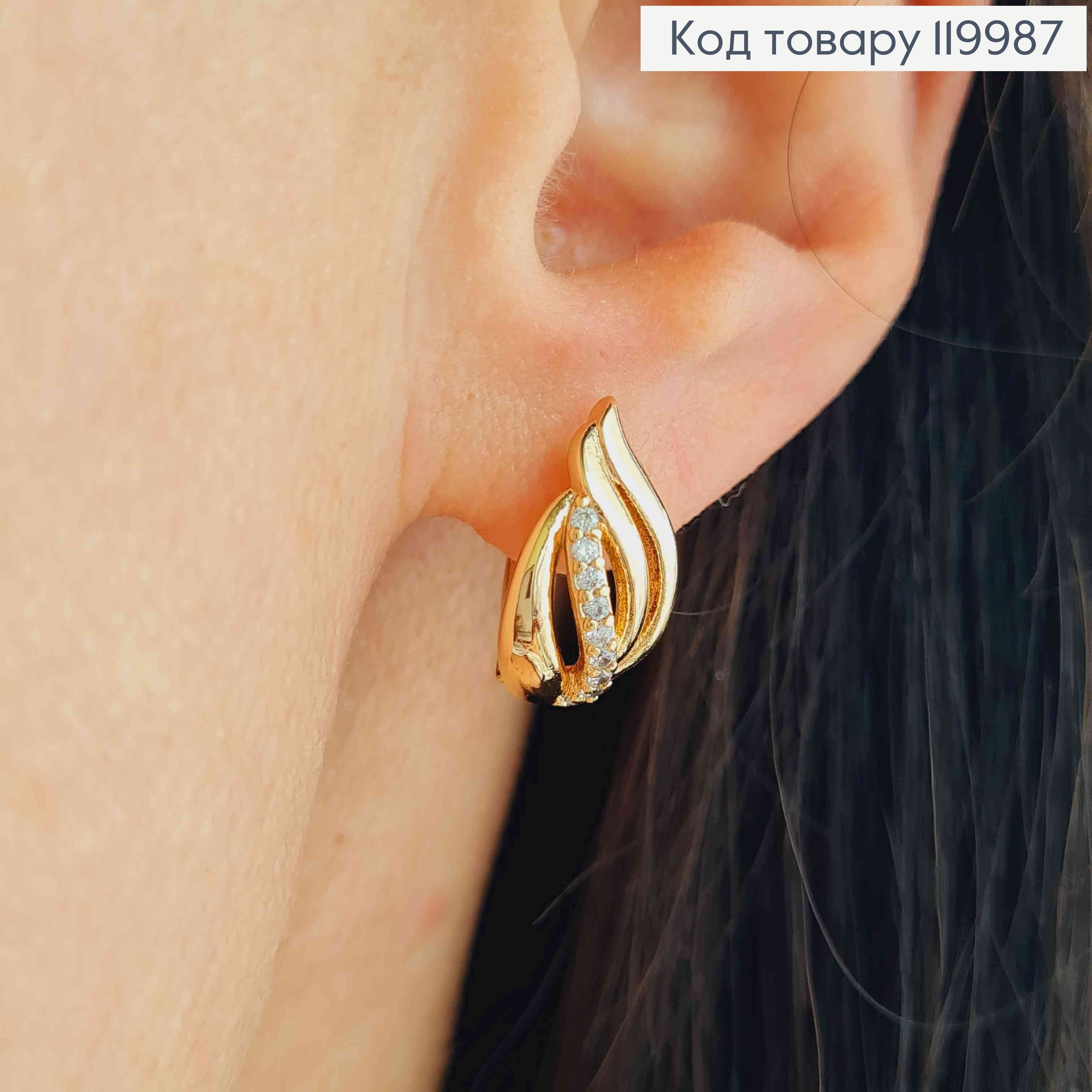 Серьги "Бесконечность" с Блестящими камешками, длина 1,6см, английская застежка, Xuping 18К 110207 фото