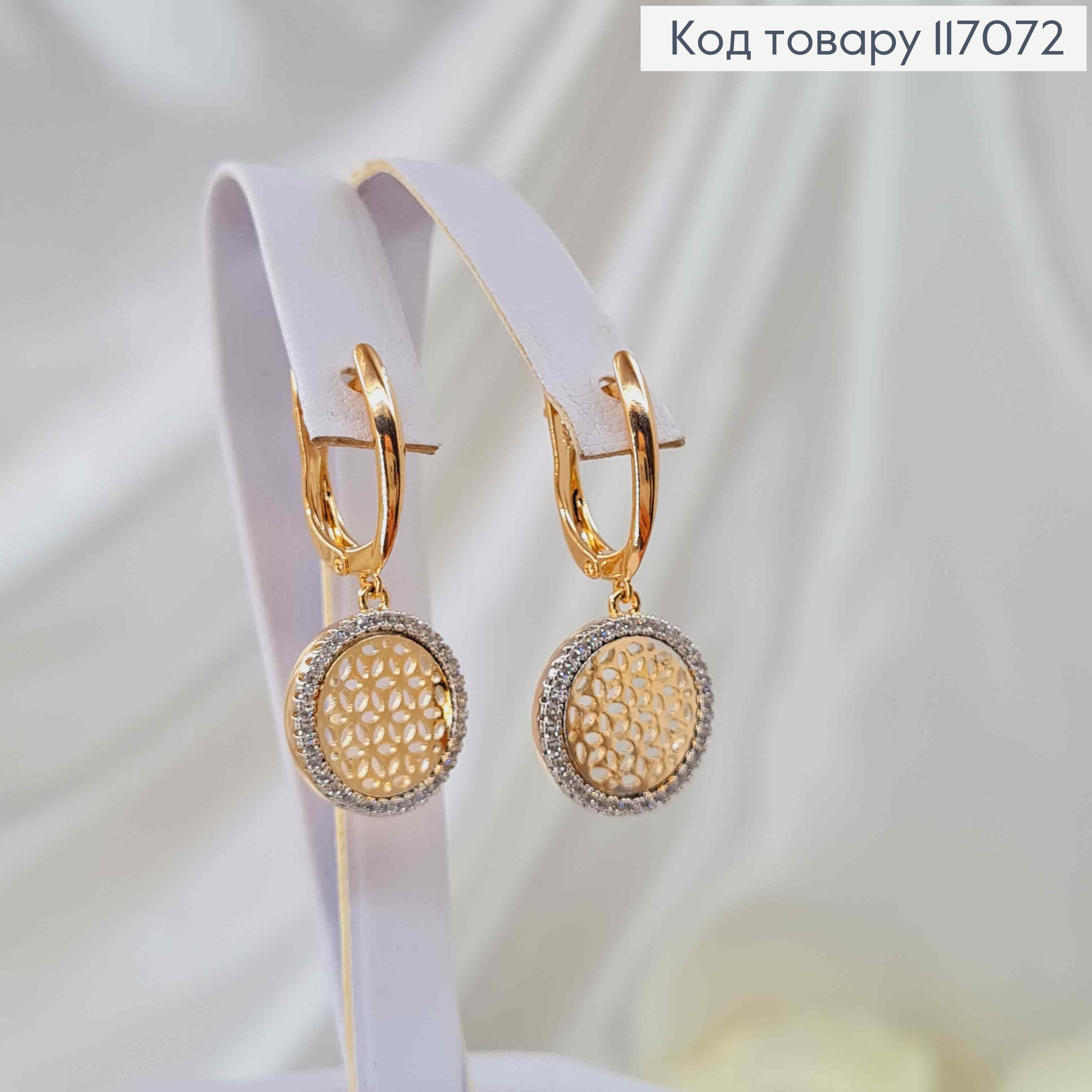 Серьги с ажурной подвеской в оправе из камешков, 3см, англ. зам. Xuping 18K