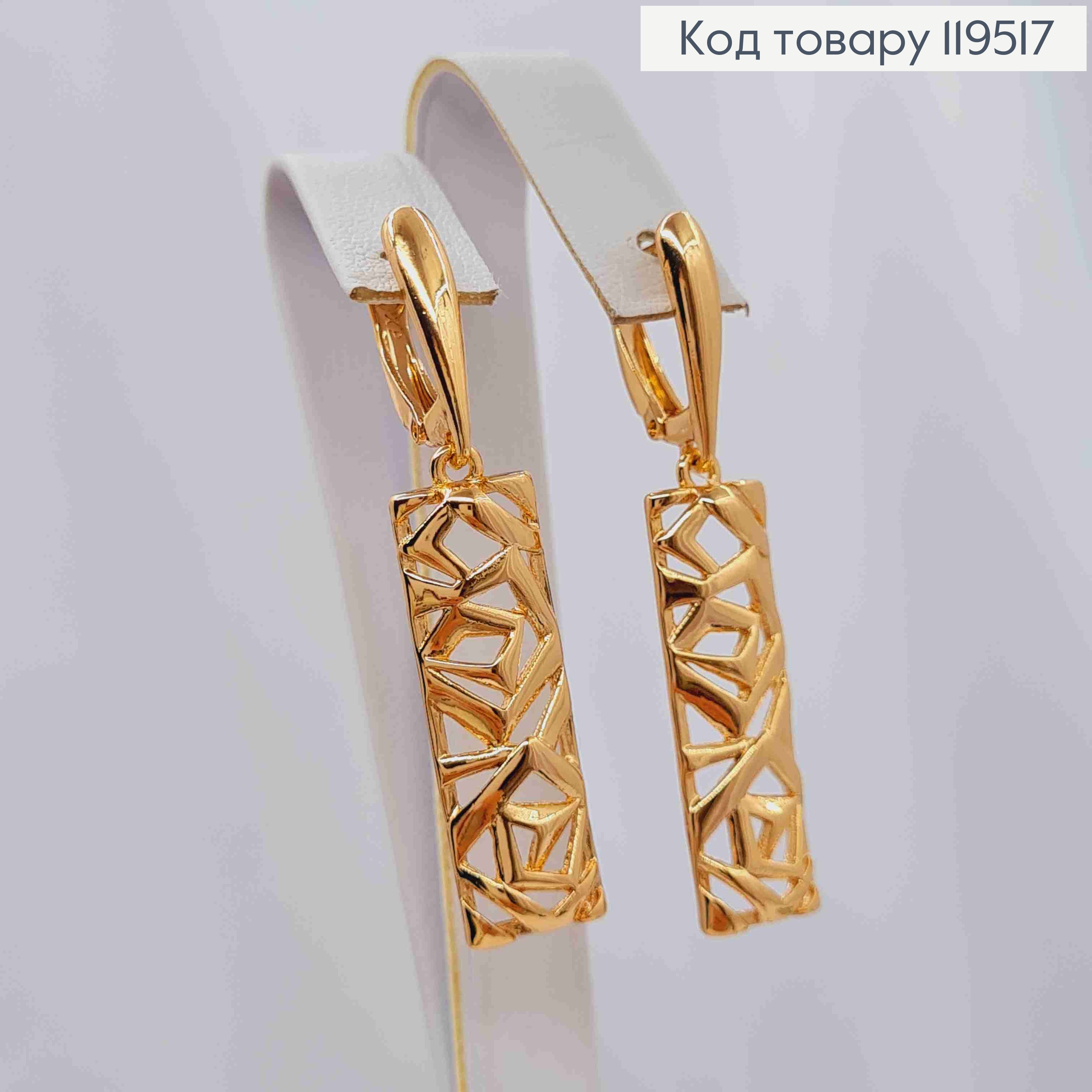 Серьги с ажурной прямоугольной подвеской, 1,5+2,6см, английская застежка, Xuping 18K