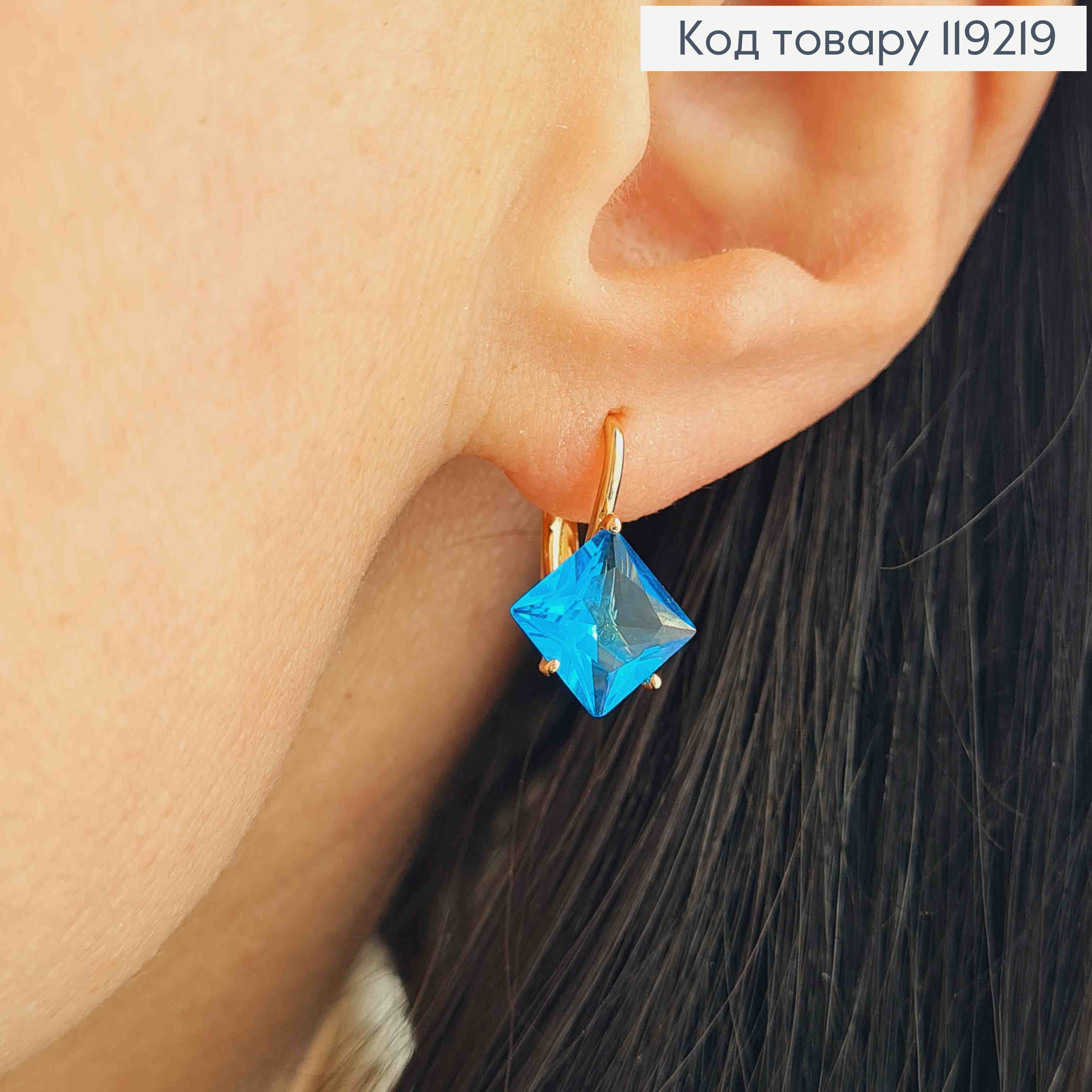 Серьги с Голубым Ромбовидным камнем, 1,8см, английская застежка, Xuping 18K