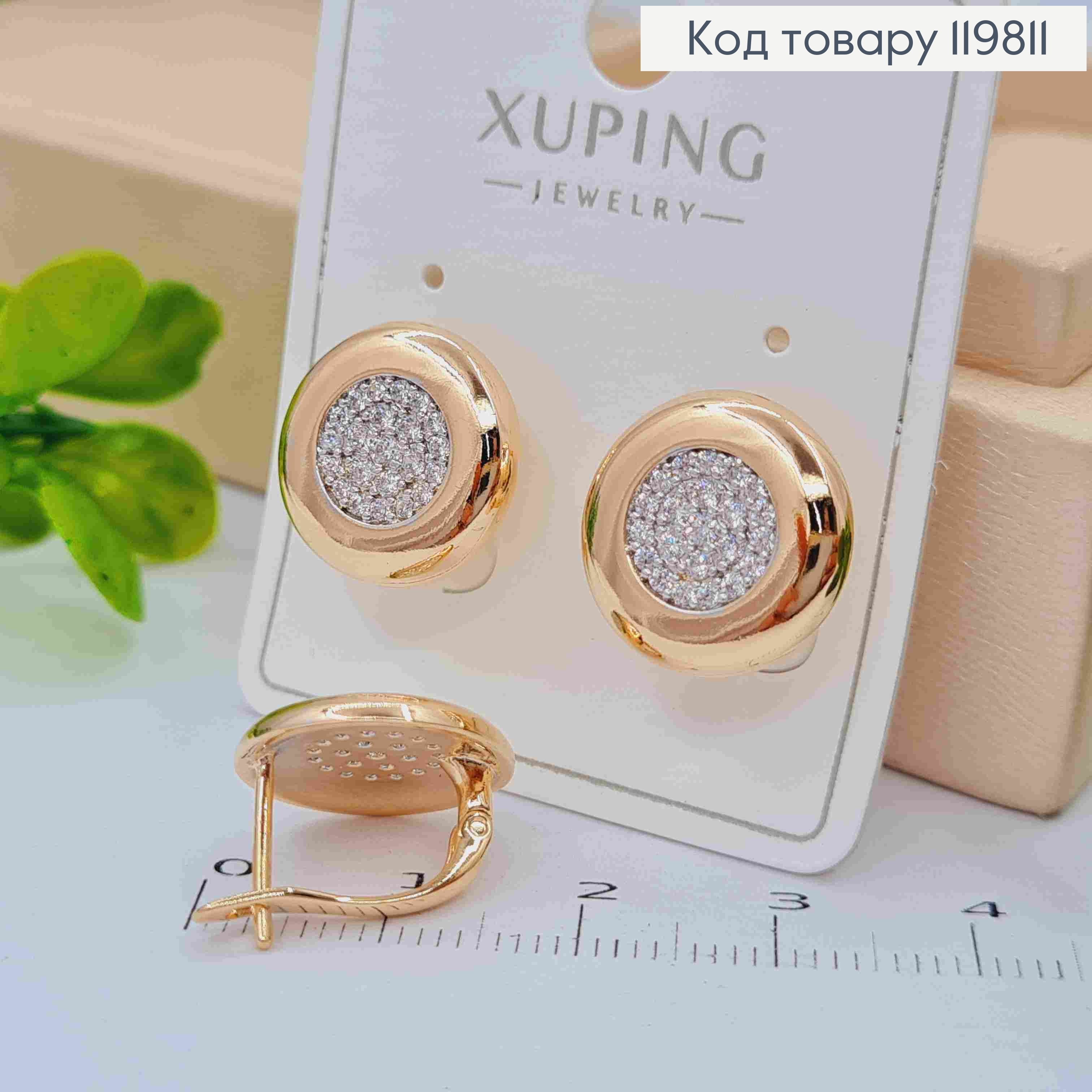 Серьги с Блестящими камешками, 1,5см, английская застежка, XUPING 18K