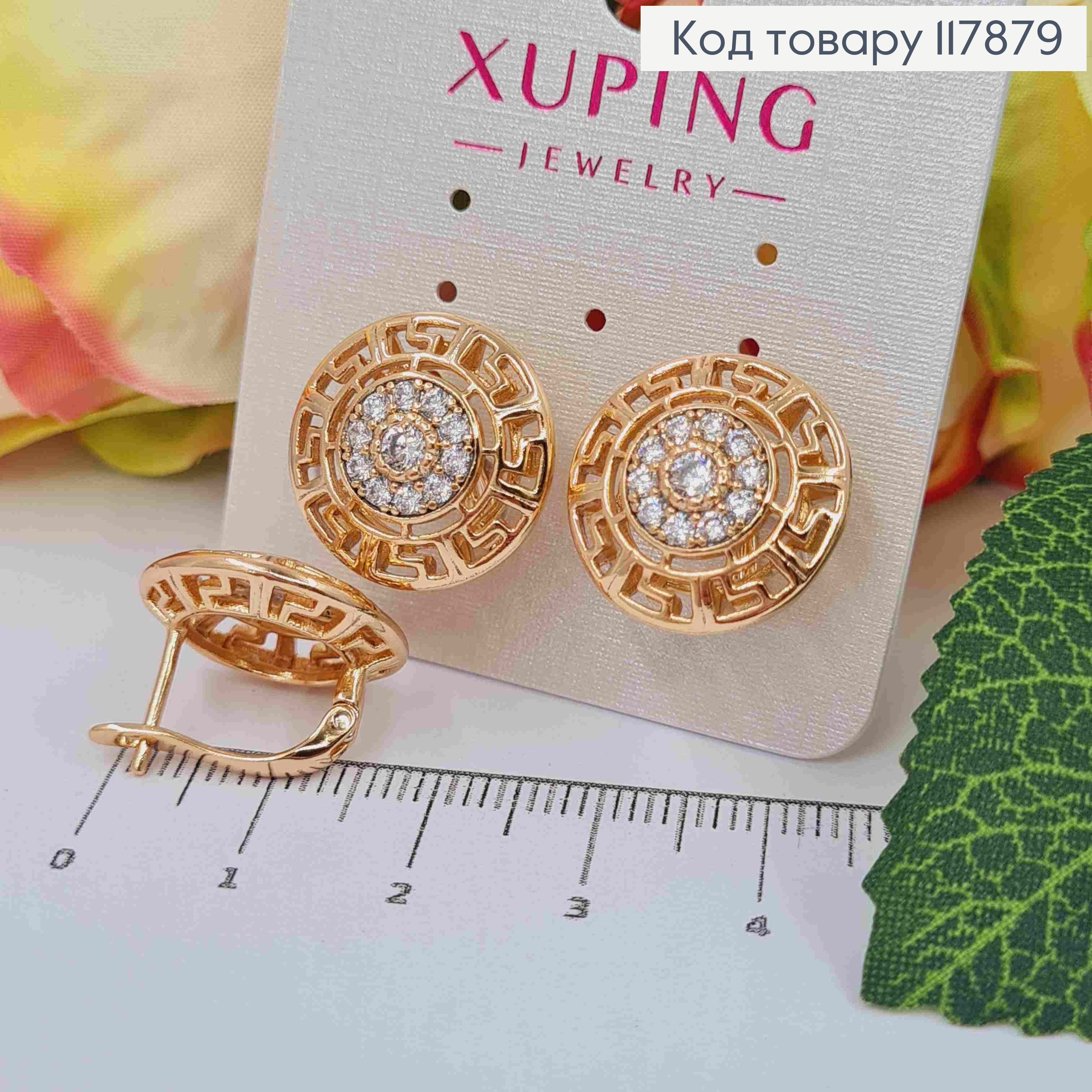 Серьги с Блестящими камешками Версаче, 1,7см, англ застежка, Xuping 18K