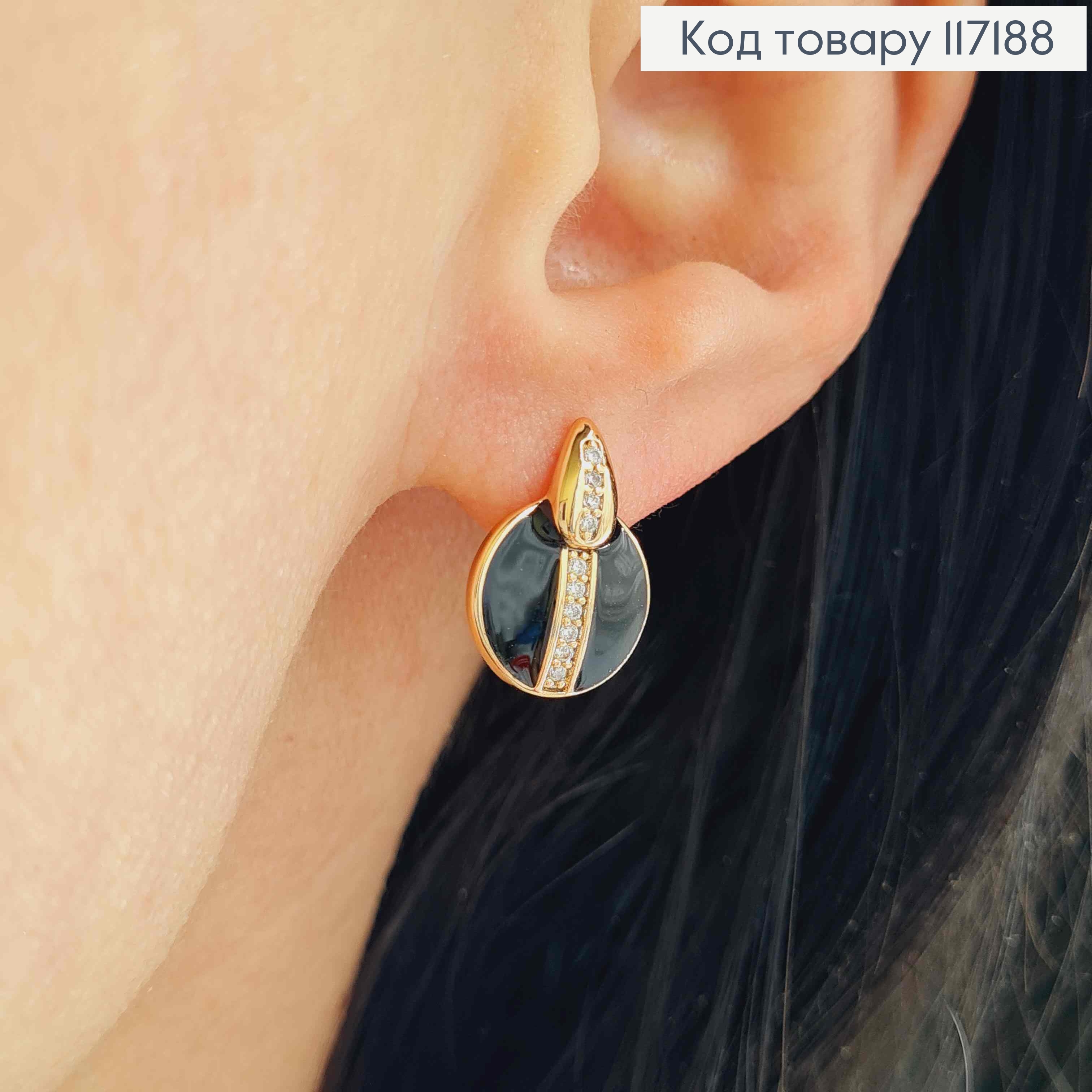 Серьги с черной эмалькой и камешками, размер 1,3*0,8см, XUPING 18K