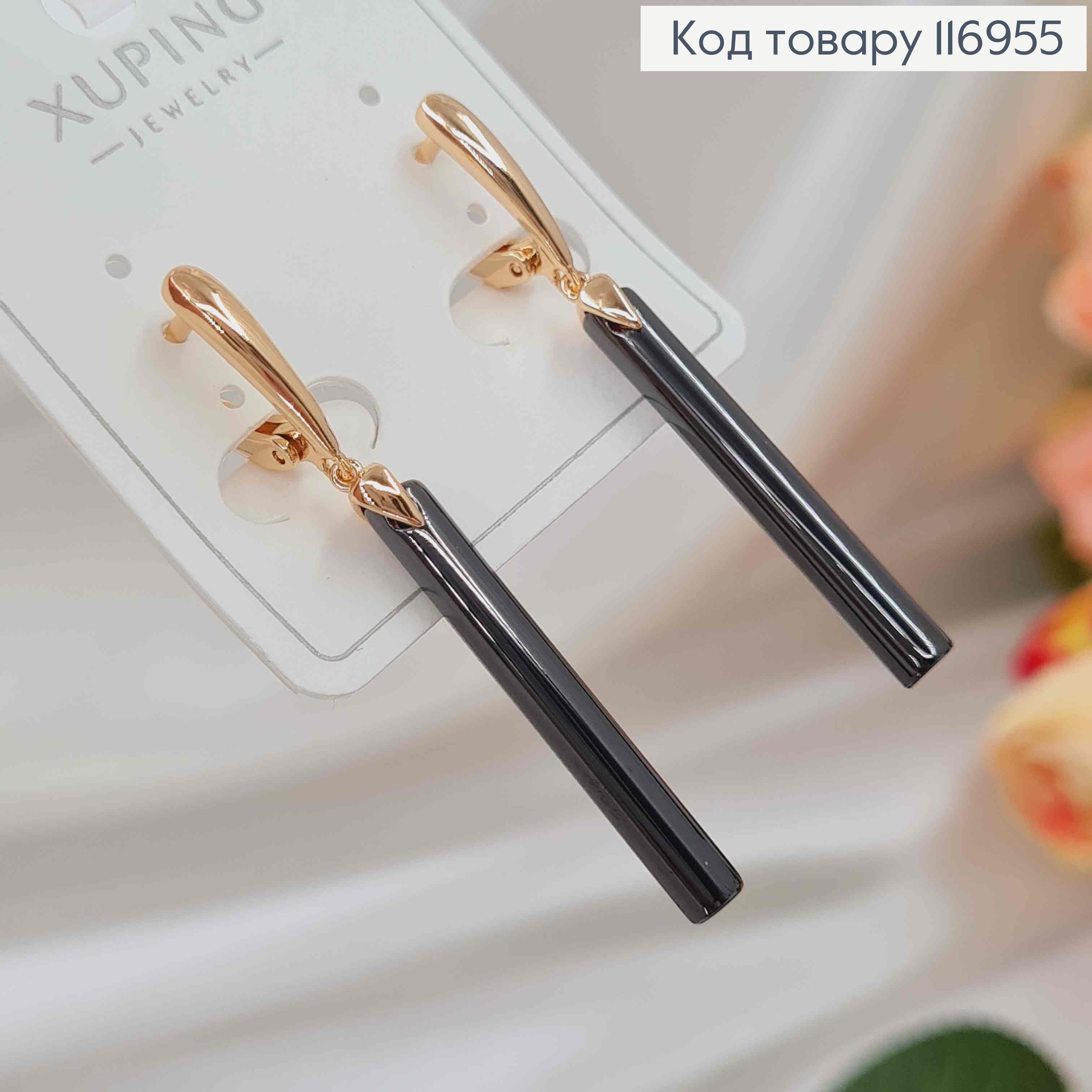Серьги с черной подвеской, 4,5см, англ.зам. Xuping 18K