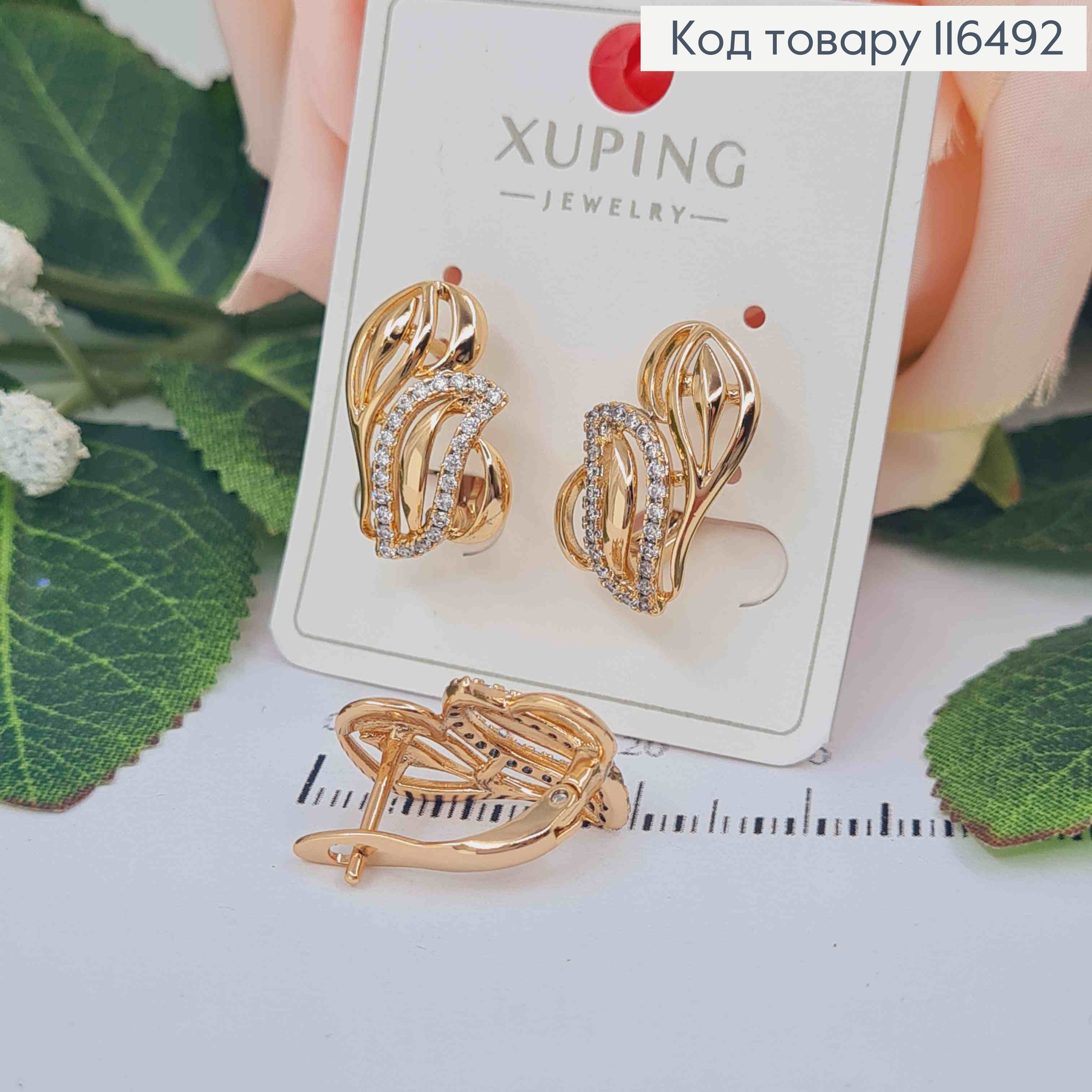 Серьги с хаотическими листочками в камнях, 1,7см, англ. зам. Xuping 18K