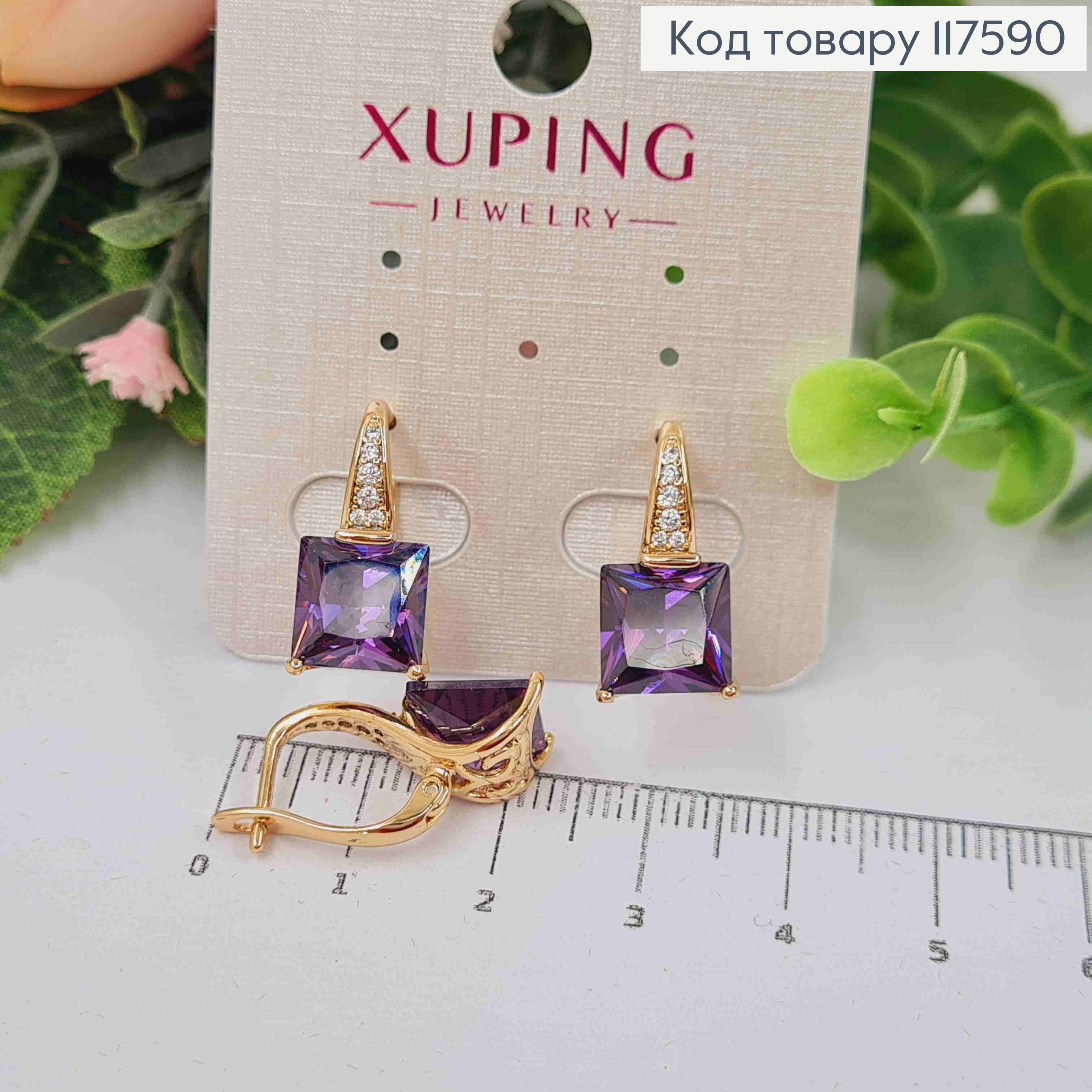 Серьги с квадратным Фиолетовым камнем, 1,9см, английская застежка, XUPING 18K