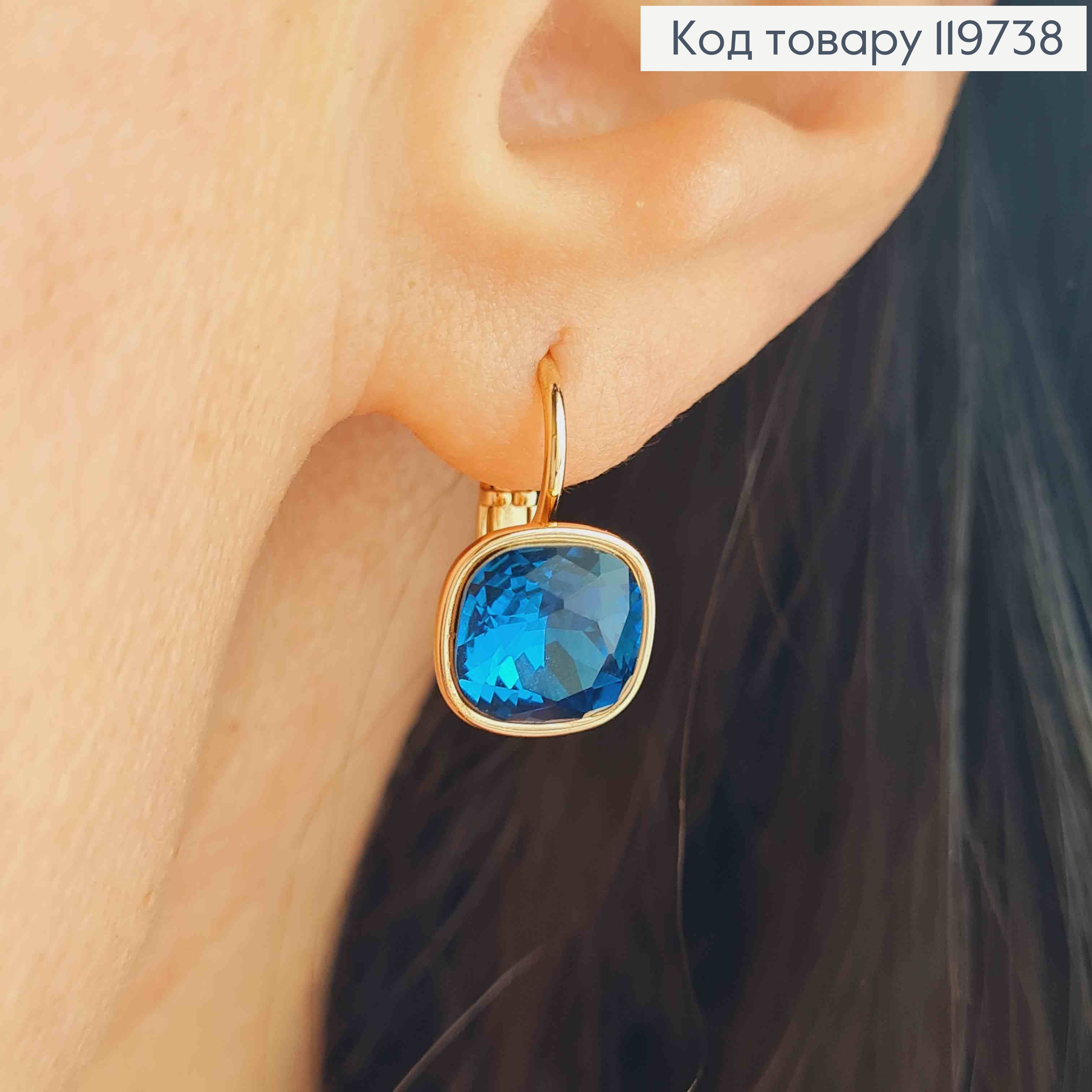 Серьги с квадратным Голубой камнем Сваровски, дл. 1,5см, застежка левербек, Xuping 18К 119740 фото