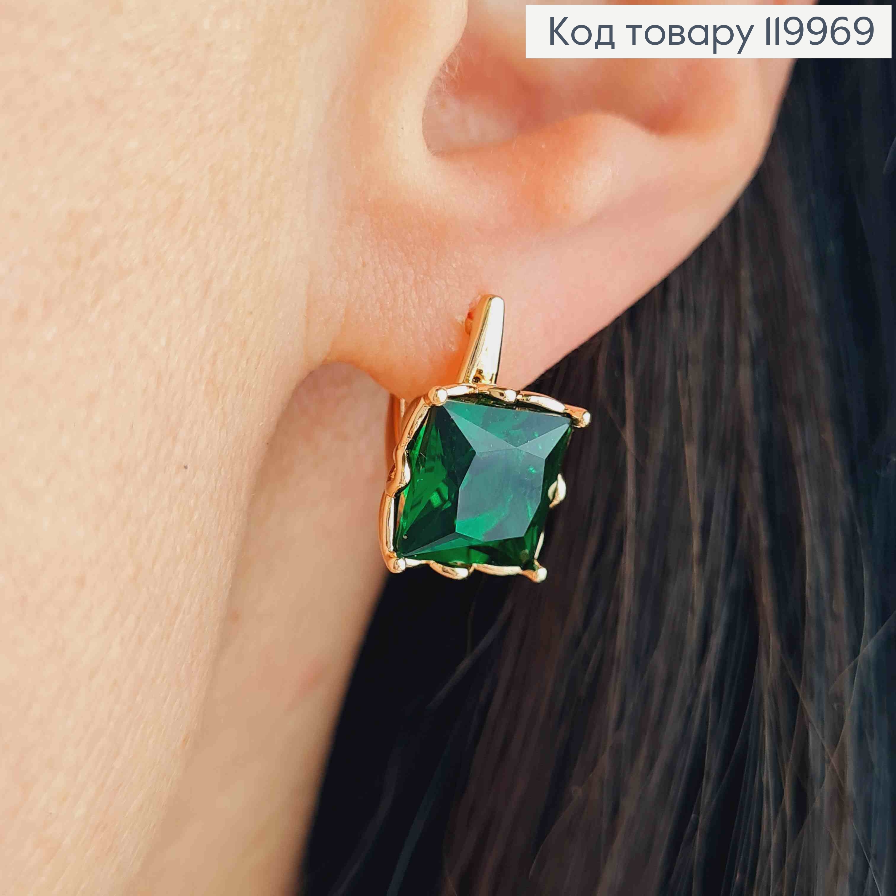 Серьги с квадратным изысканно-зеленым камнем, дл. 1,5см, английская застежка, Xuping 18K