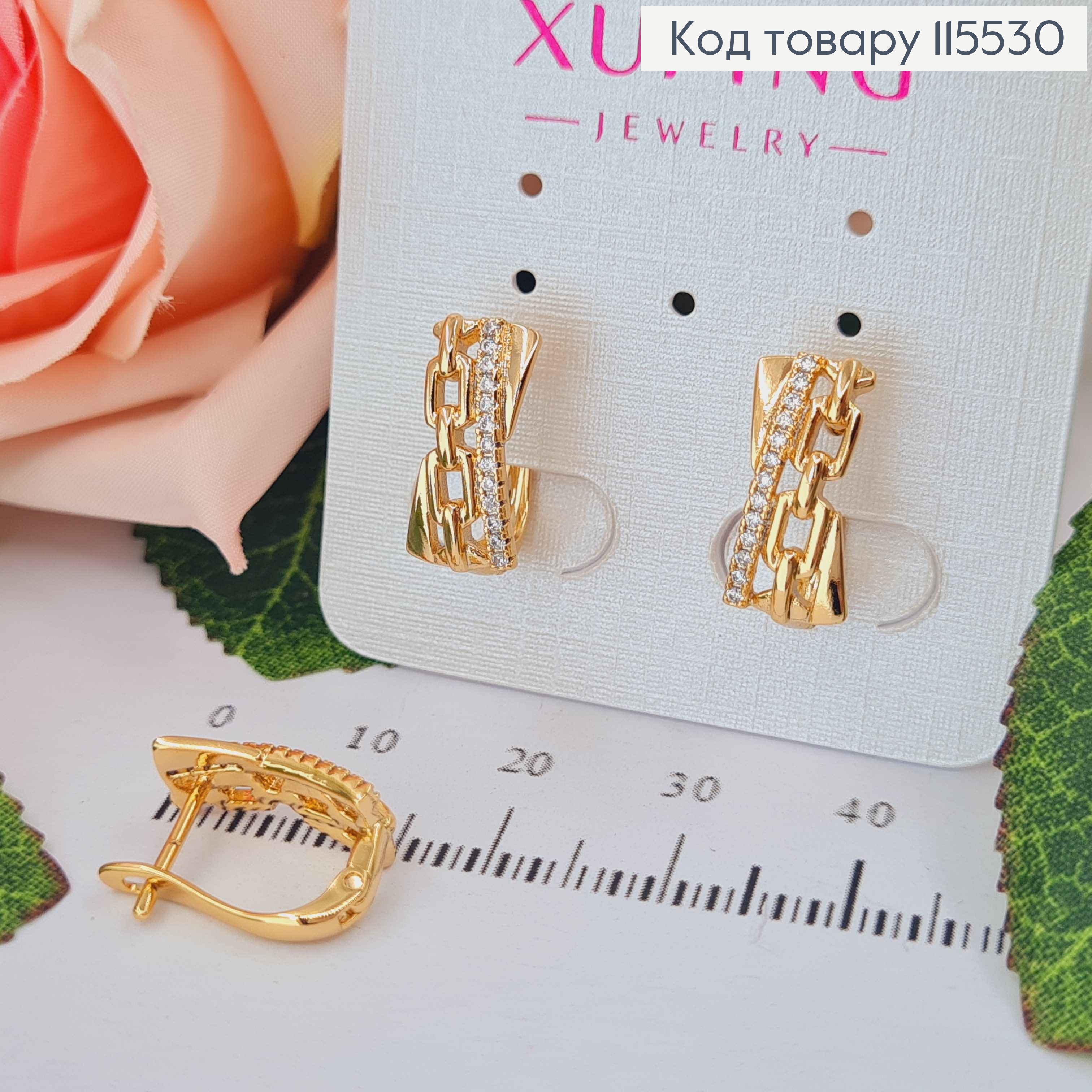 Серьги с цепочкой и строчкой камней, 1,5см англ. зам. Xuping 18K