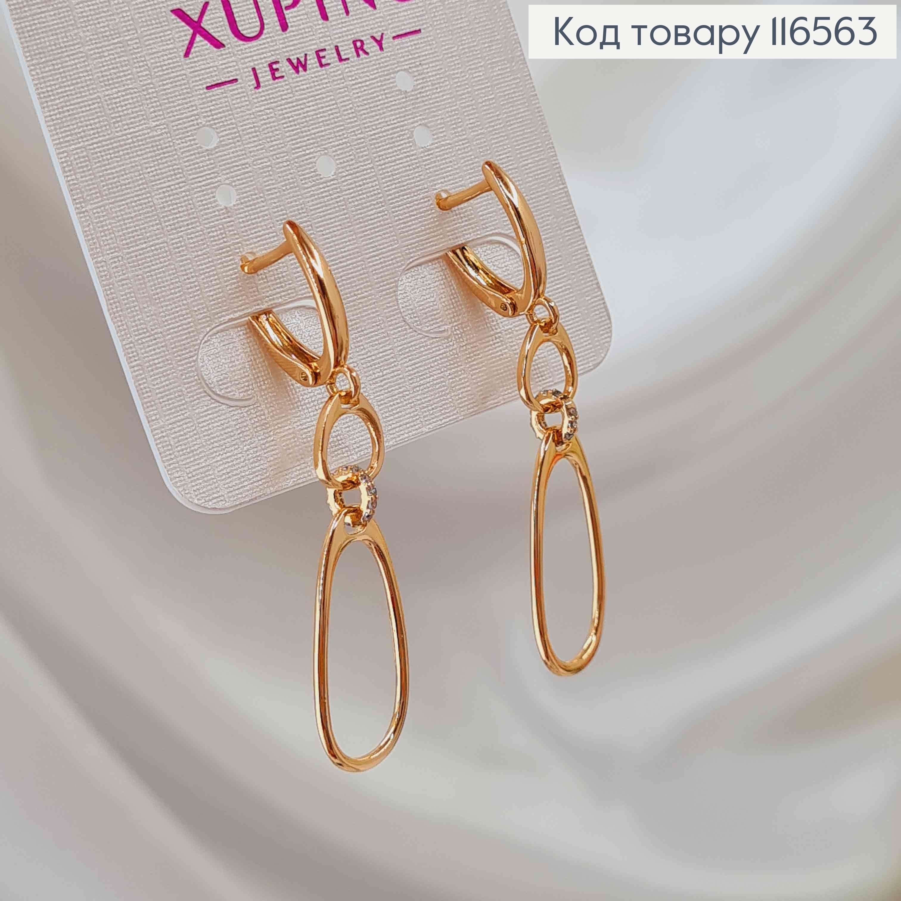 Серьги с овальными подвесками, с камешками, 3см, англ. зам. Xuping 18K