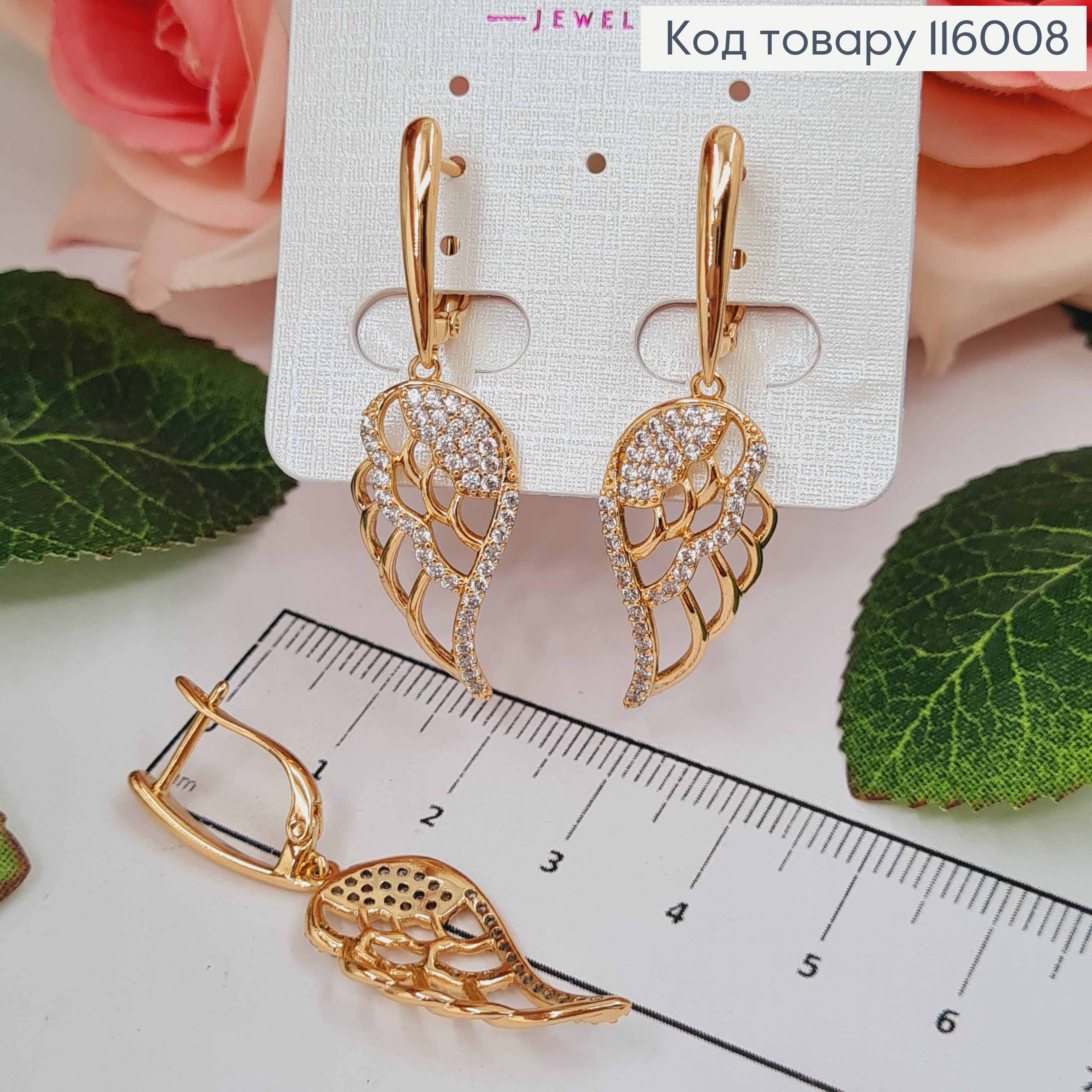 Серьги с подвесками Крыльями ангела, в камнях, 4см, англ. застежка, 18K
