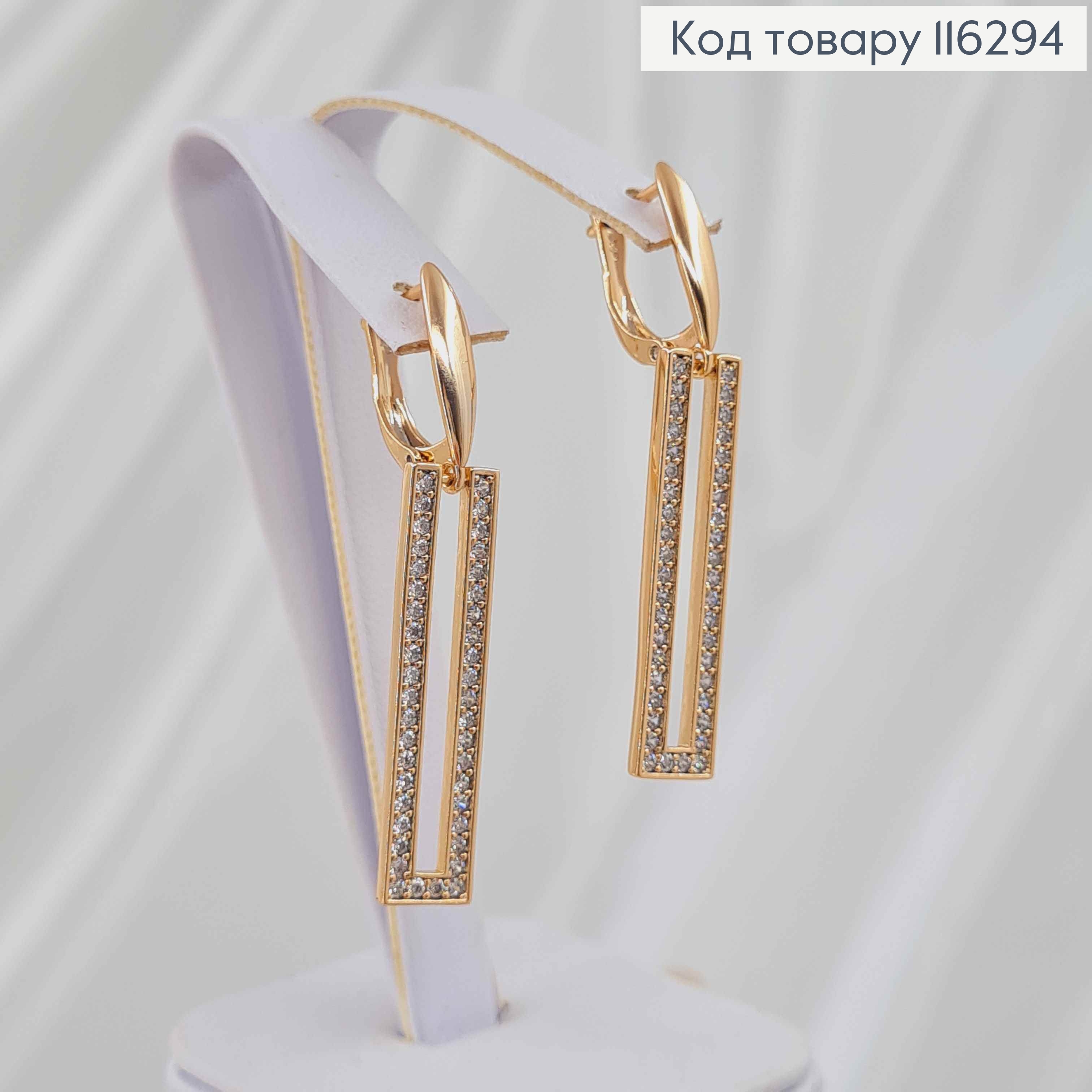 Серьги, с подвесками Прямоугольными пластинками в камешках, 3см, англ. зам. Xuping 18K