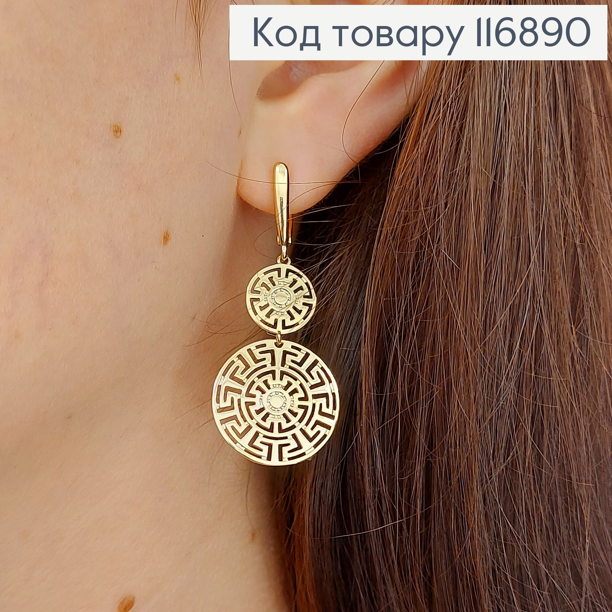 Серьги, с подвеской "Лабиринт Судьбы", (Версаче) 4,5см, англ. Xuping 18K