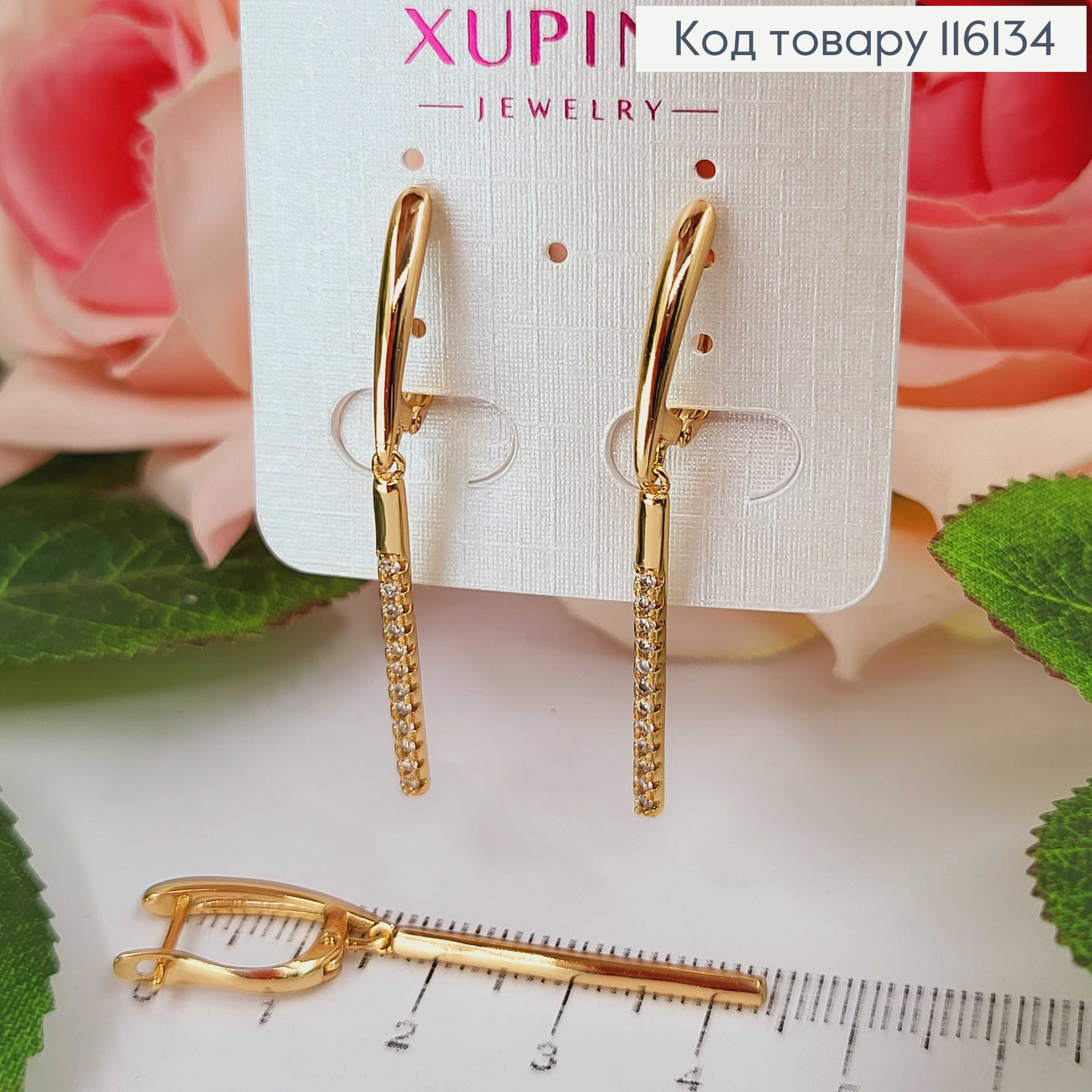 Серьги, с подвеской палочкой в камешках, 4см, англ. застежка, Xuping 18К