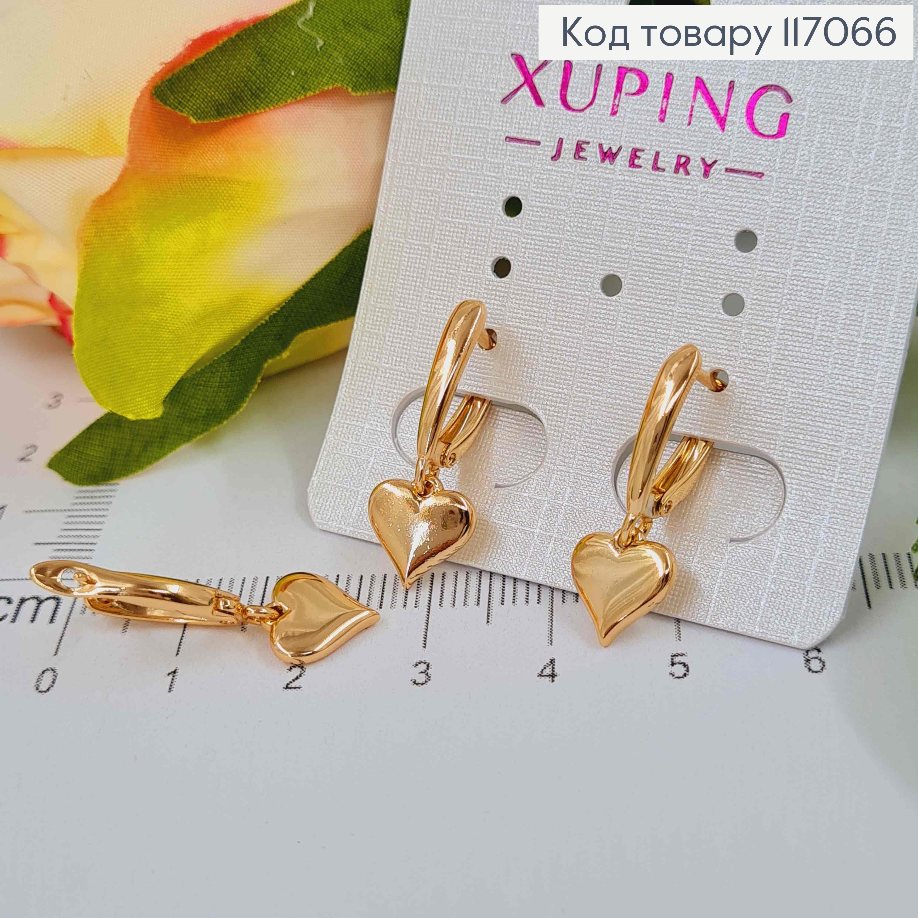 Серьги с подвеской сердечком, 2см, Xuping 18K