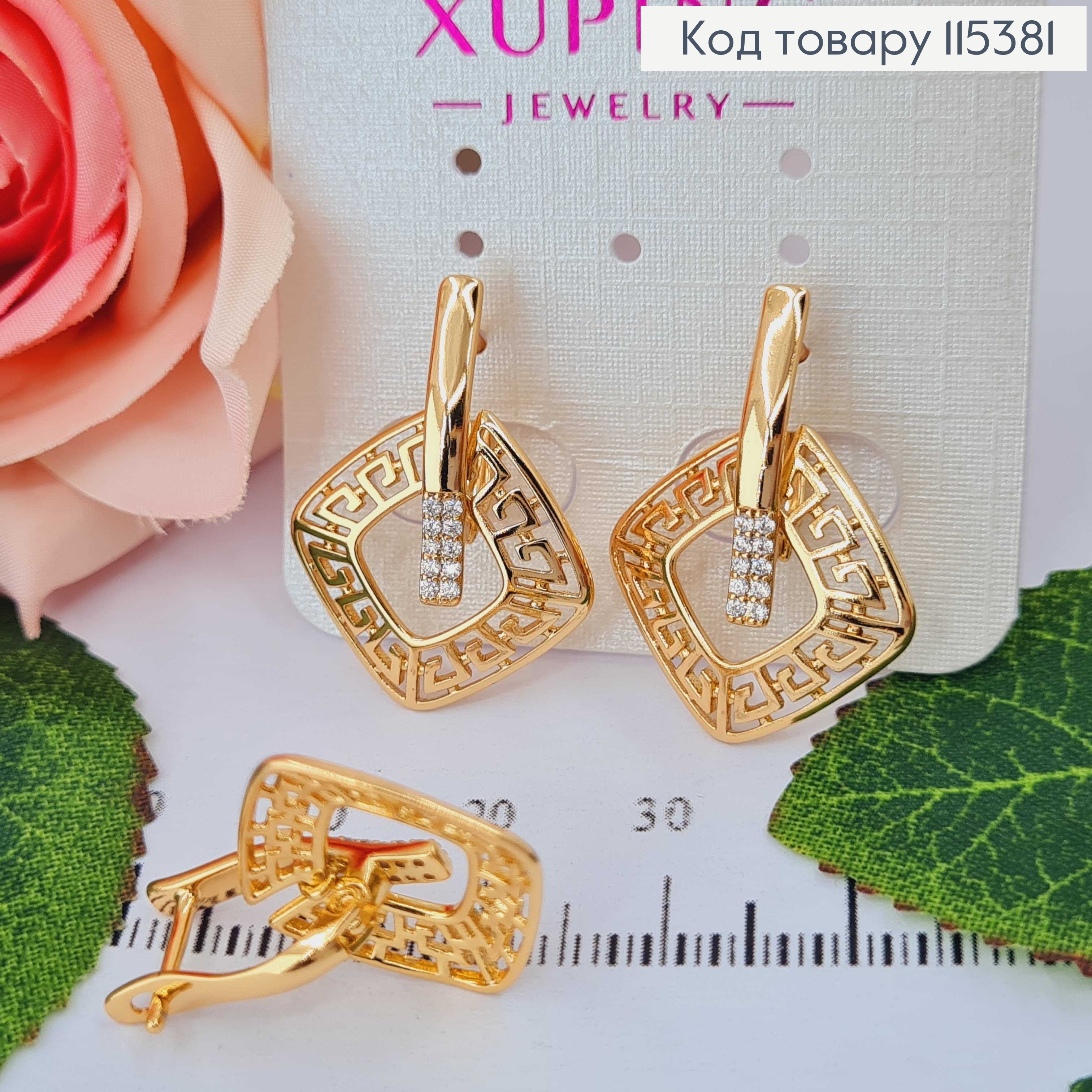 Серьги с квадратным блестящим камнем, 1,9см, английская застежка, Xuping 18K 110257 фото