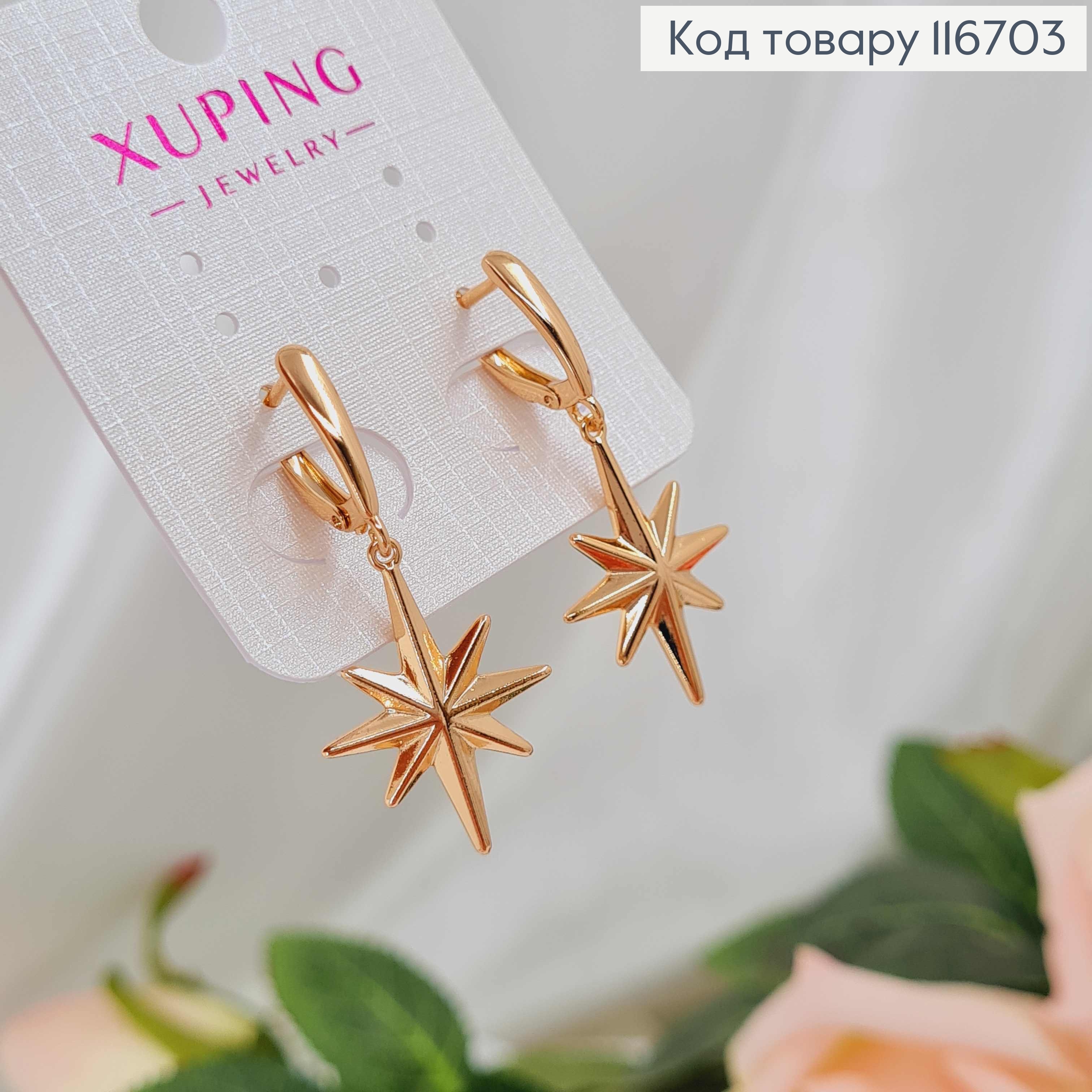 Серьги с подвеской звездой, 3,5см, англ. зам, Xuping 18К