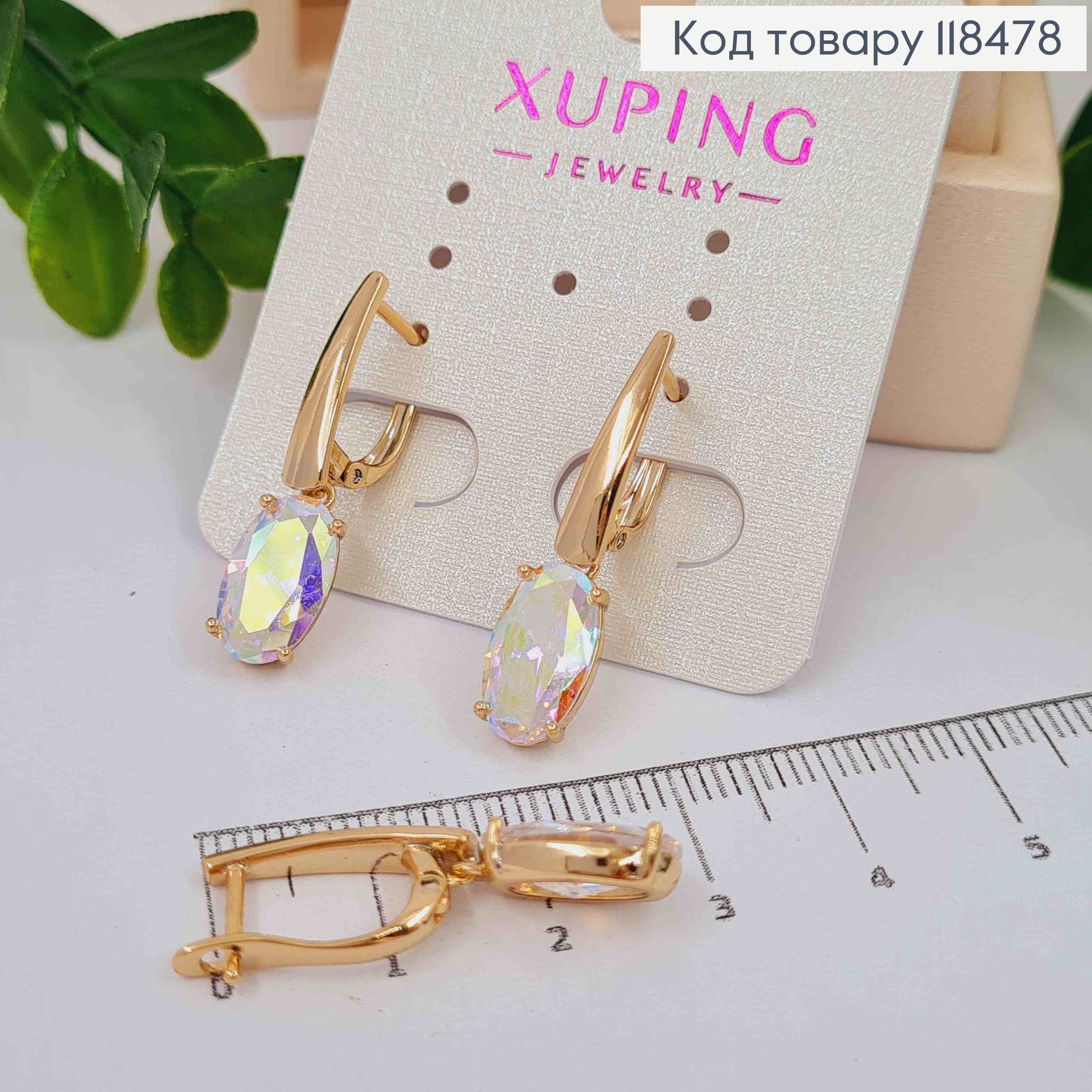 Серьги украшены Блестящими камешками, длина 1,8см, английская застежка, Xuping 18К. 110205 фото