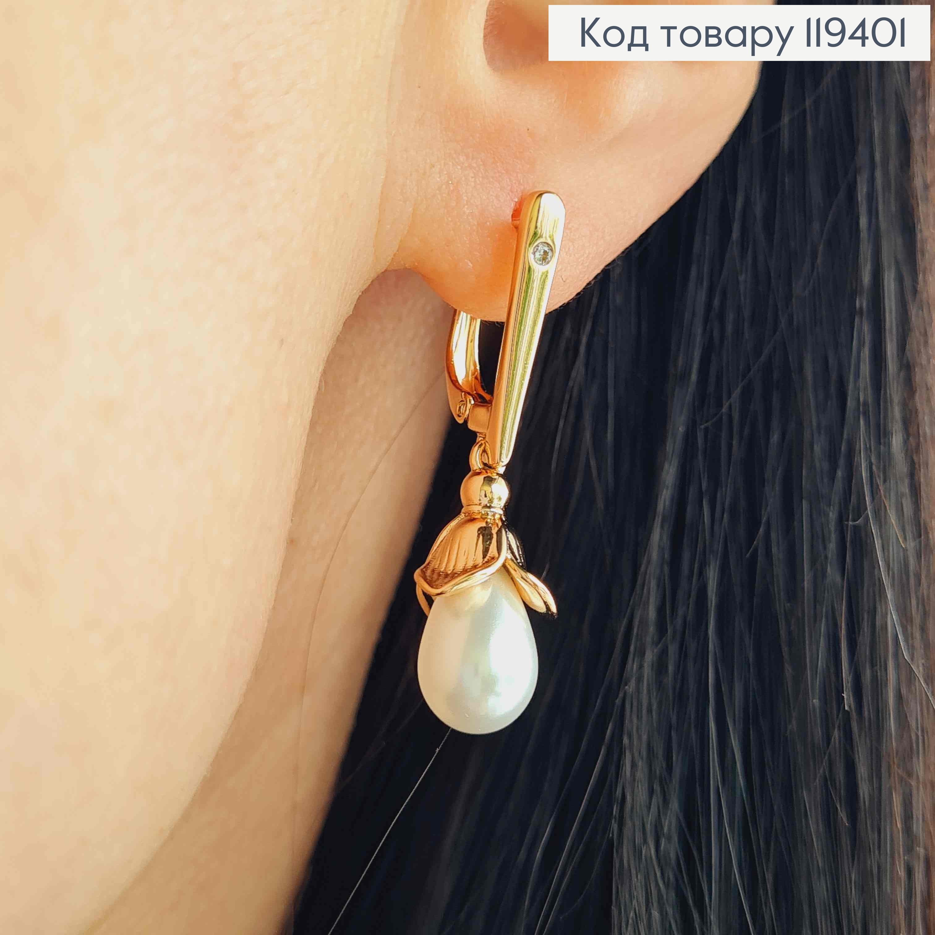Серьги с подвесной Жемчужиной в Цветке, 1,7+1,8 см, английская застежка, Xuping 18К