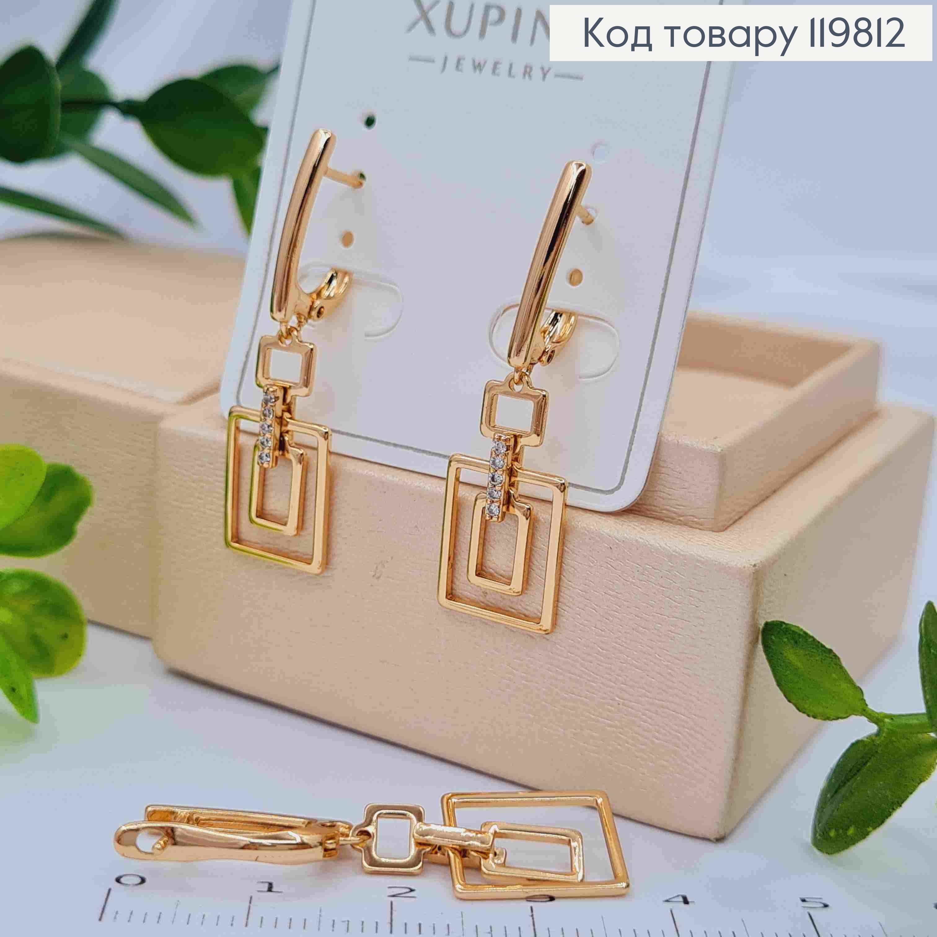 Серьги кольца "Прямоугольные" украшены Блестящими камешками, длиной 2,4см, застежка заколка, Xuping 18К 110199 фото