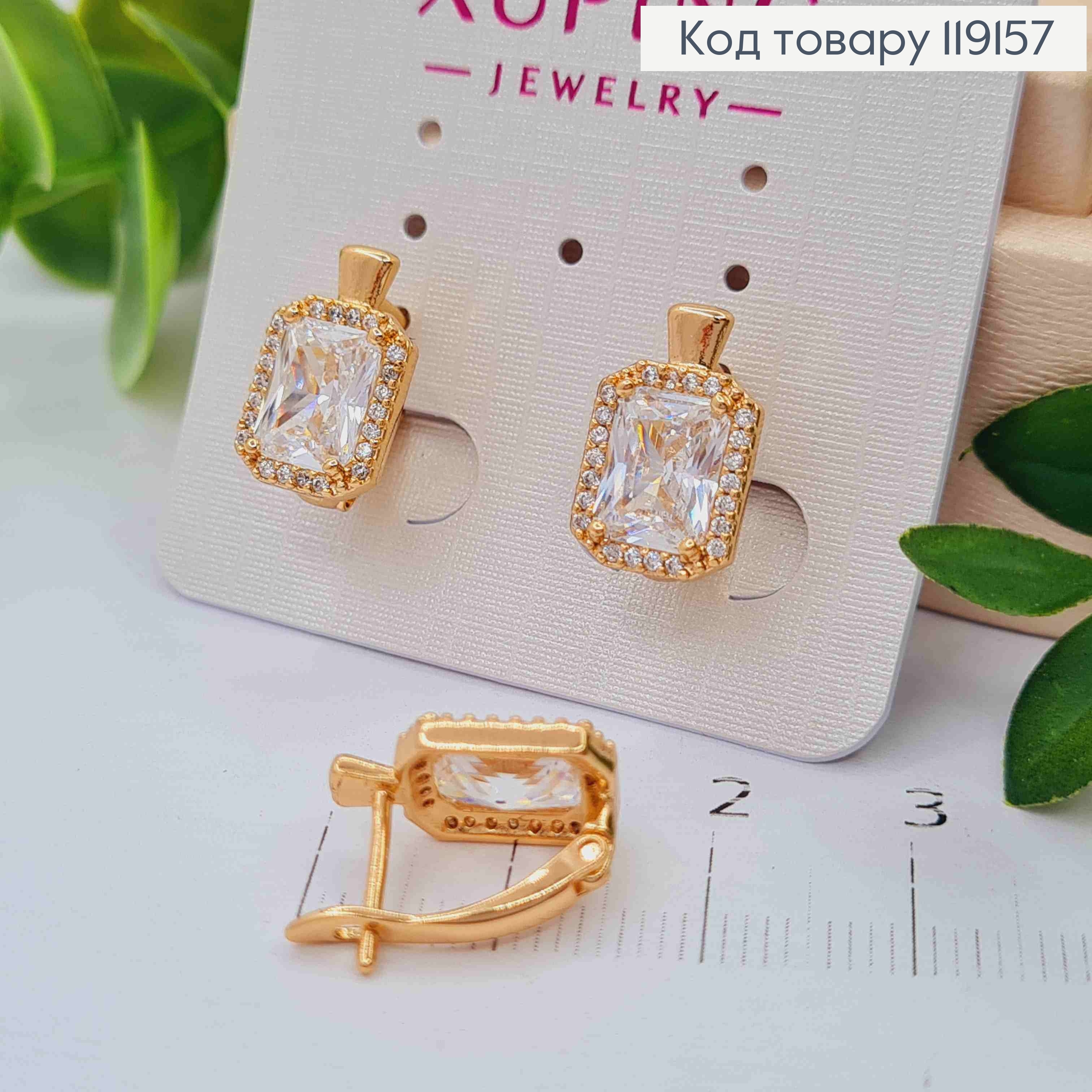 Серьги кольца "Прямоугольные" украшены Блестящими камешками, длиной 2,4см, застежка заколка, Xuping 18К 110199 фото