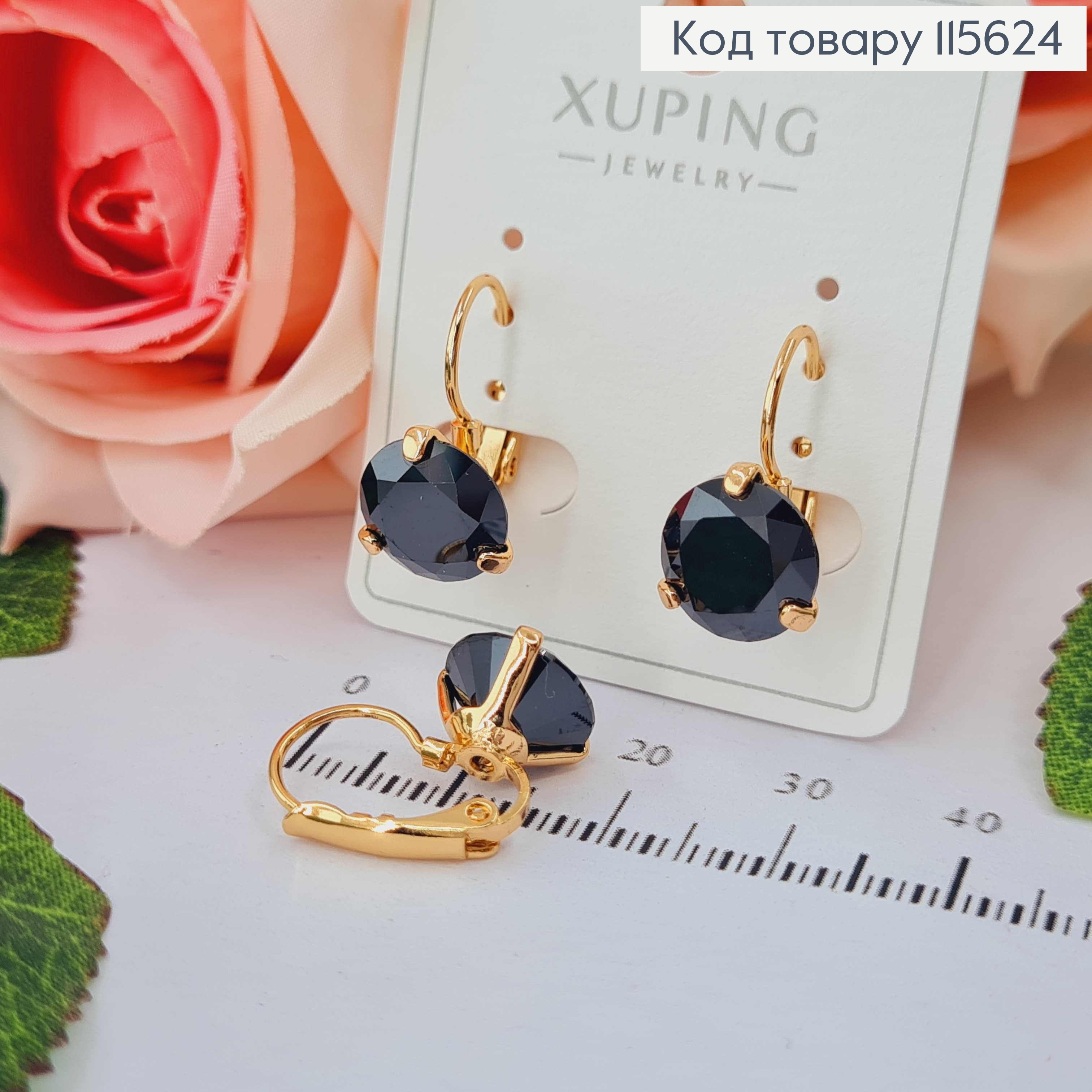 Серьги с большим черным камешком 1см, Франц. зам. Xuping 18K