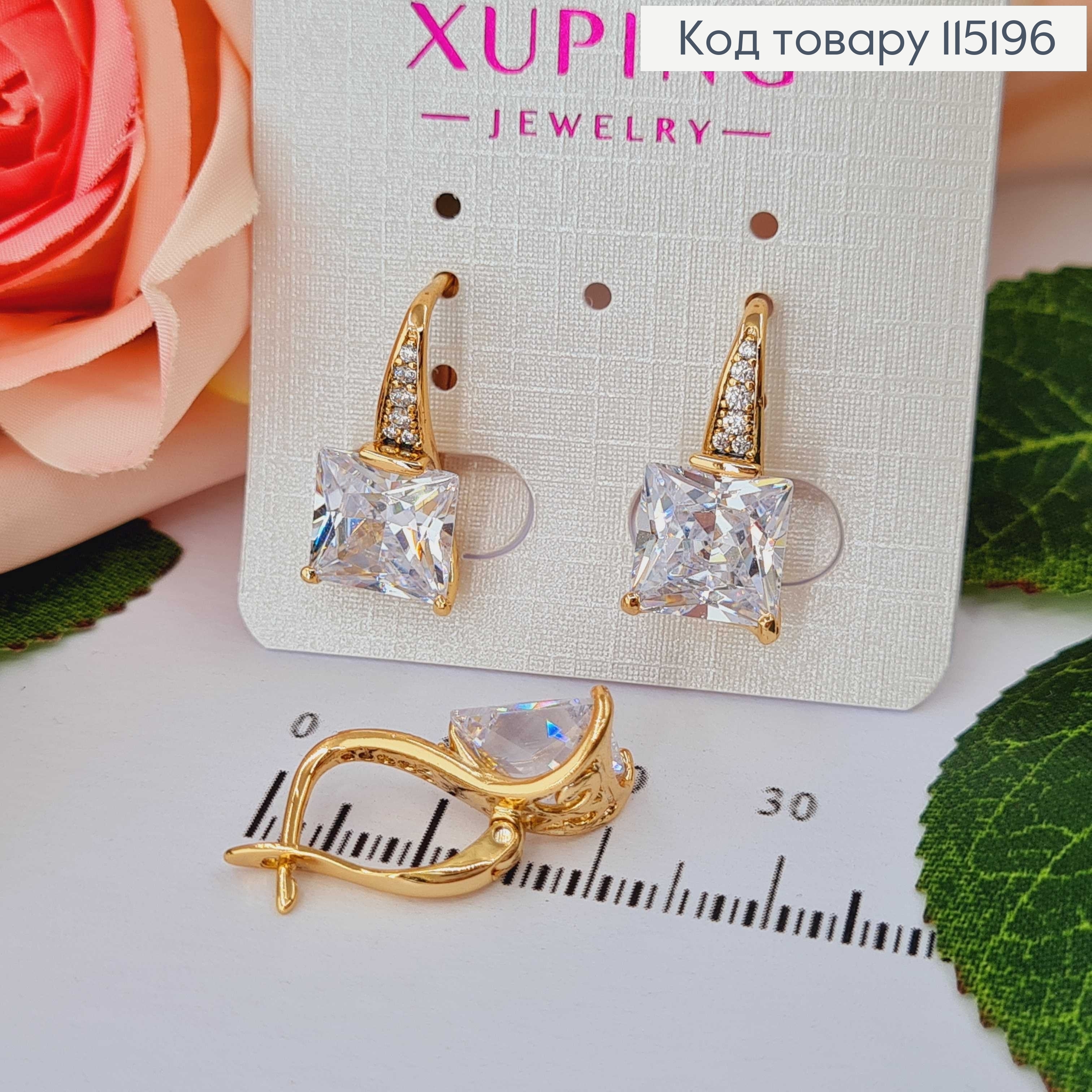 Серьги с квадратным блестящим камнем, 1,9см, английская застежка, Xuping 18K 110257 фото