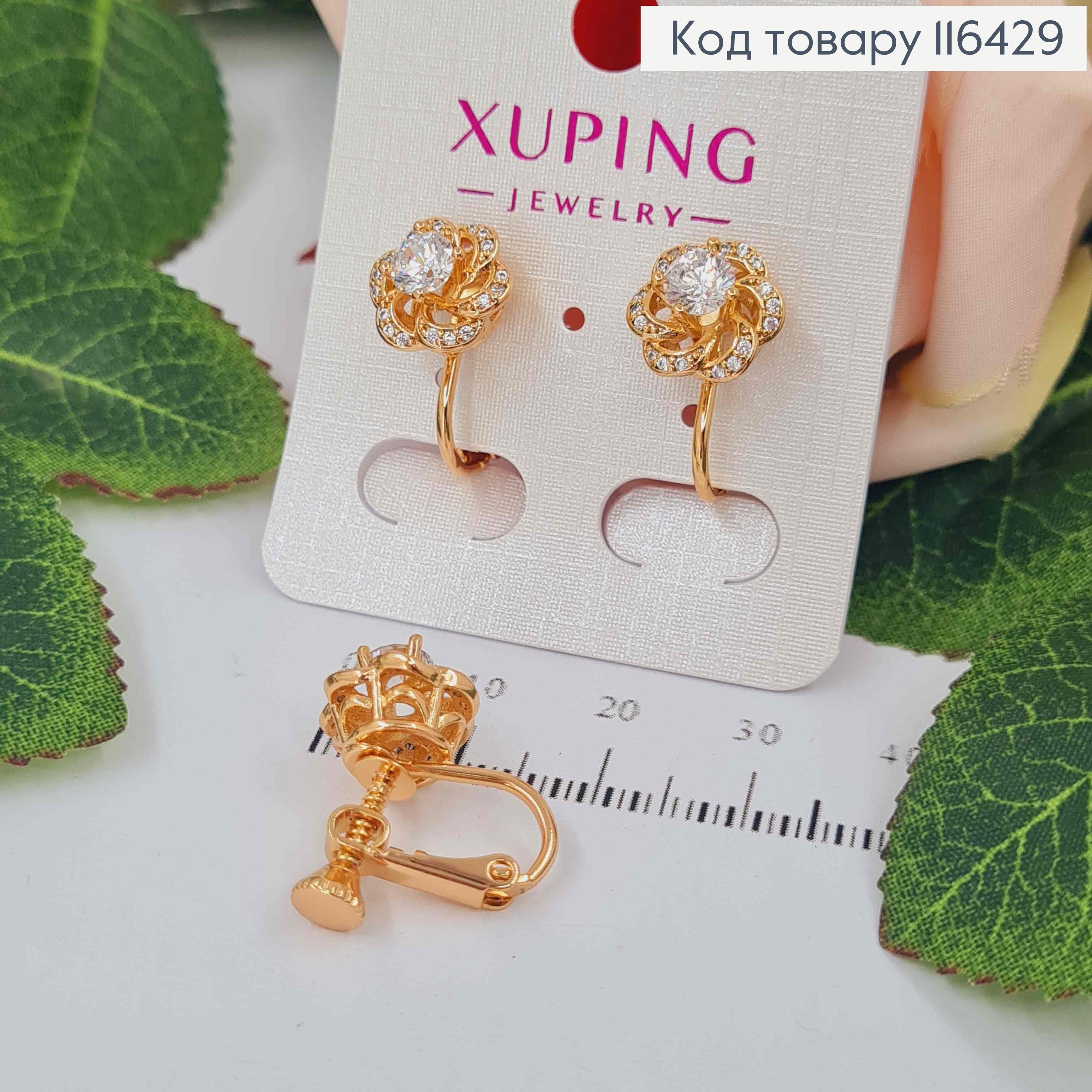 Серьги, С большой розой и камнем, 1см, клипси на закрутке, Xuping 18К