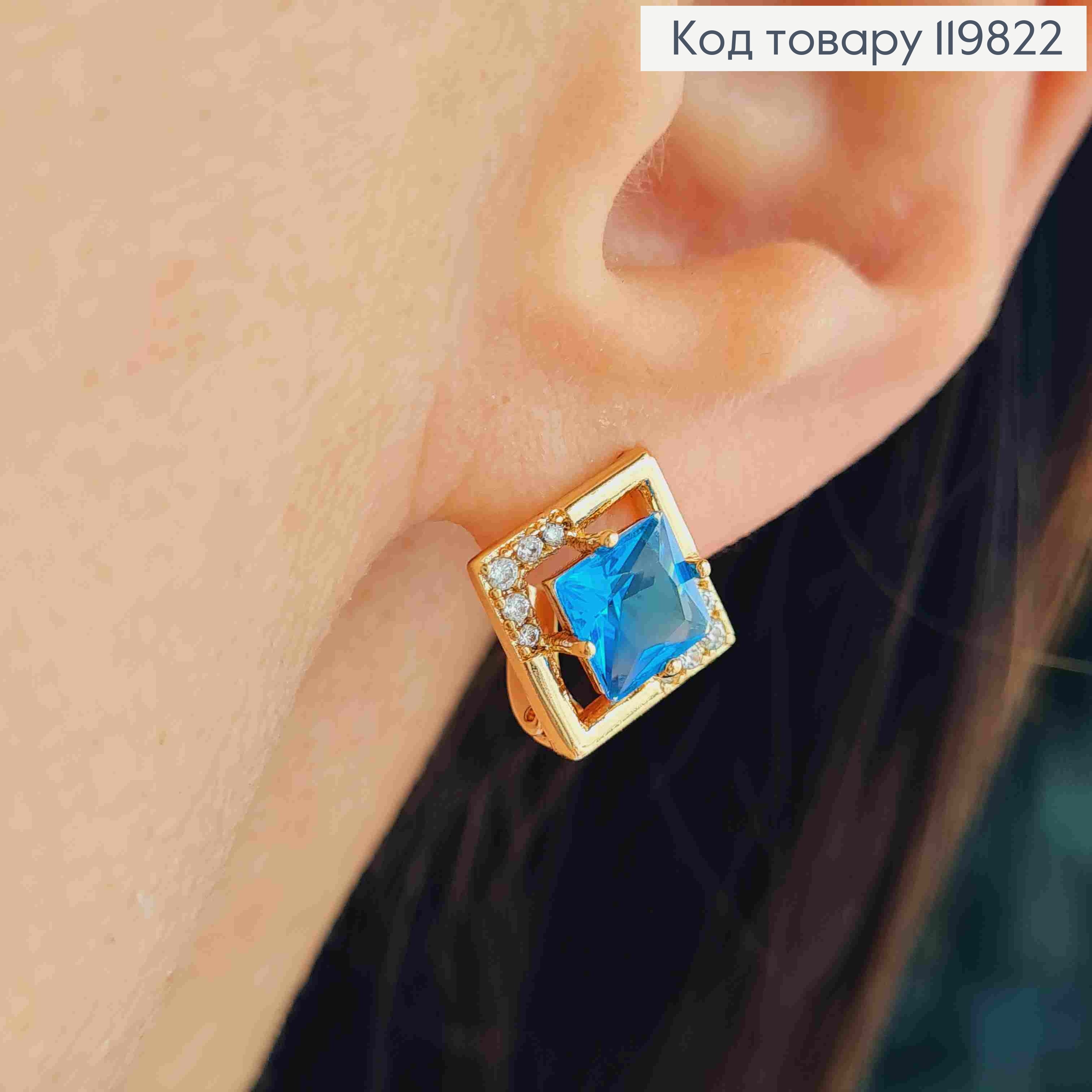 Серьги с изысканным Голубым камнем, 1,4см, английская застежка, XUPING 18K